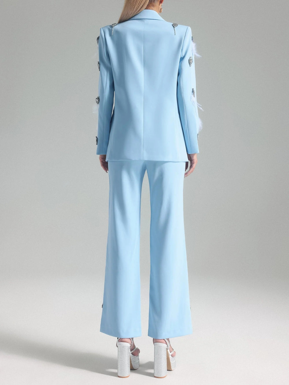 Fashion Nailed Diamond Feather Suit Two-piece Set