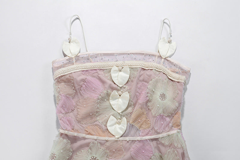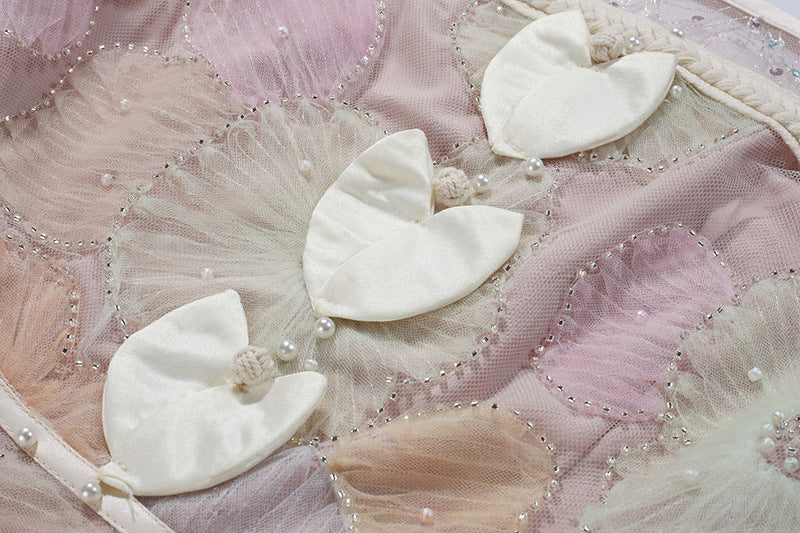 Elegant Beaded Color Print Midi Dress