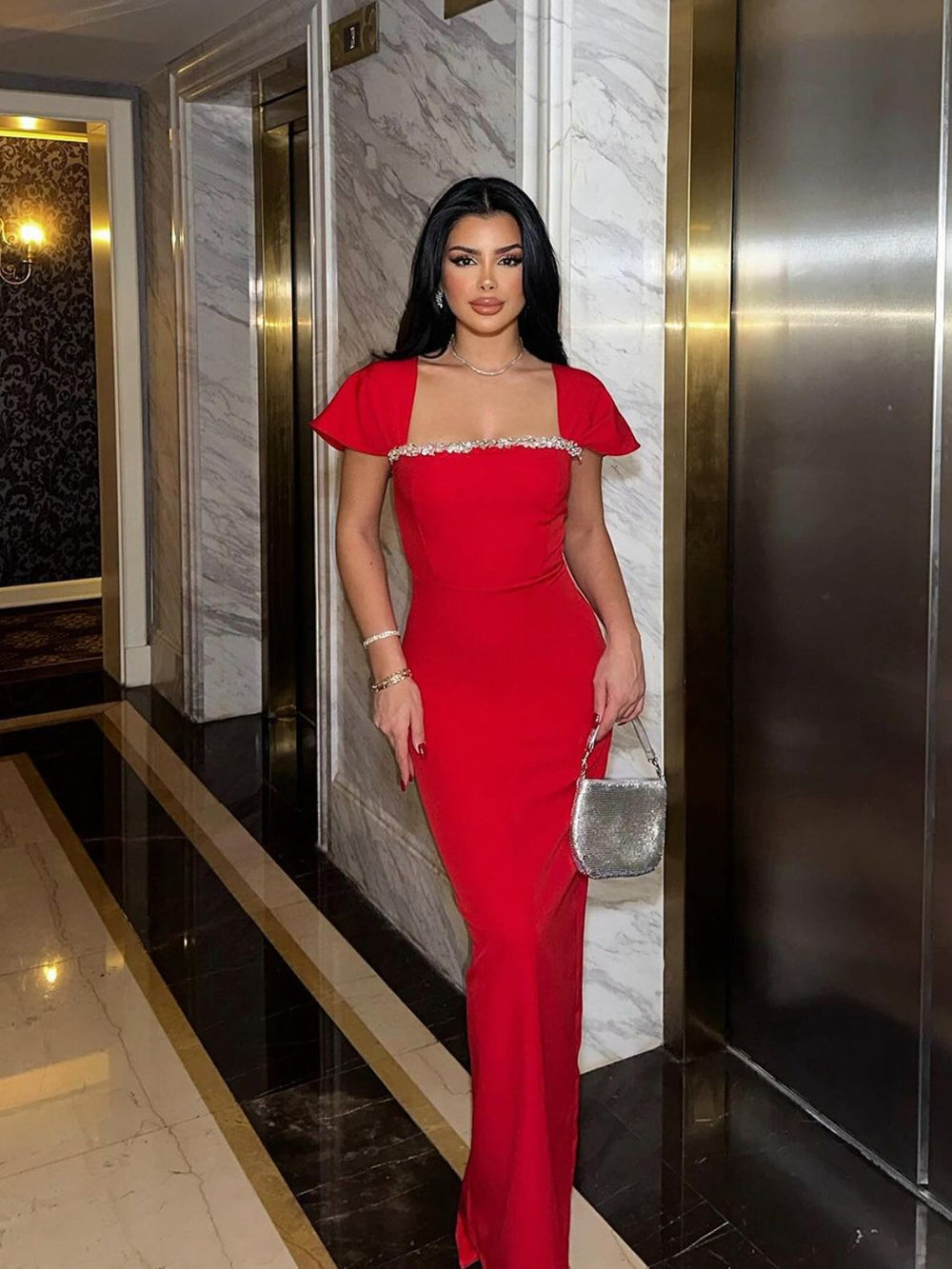 Emma Red Hollow Off-Shoulder Maxi Dress