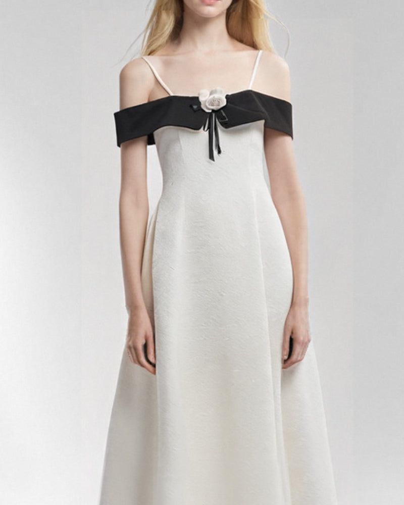 Textured Pleated High-Quality Suspender Colorblock Elegant Dress