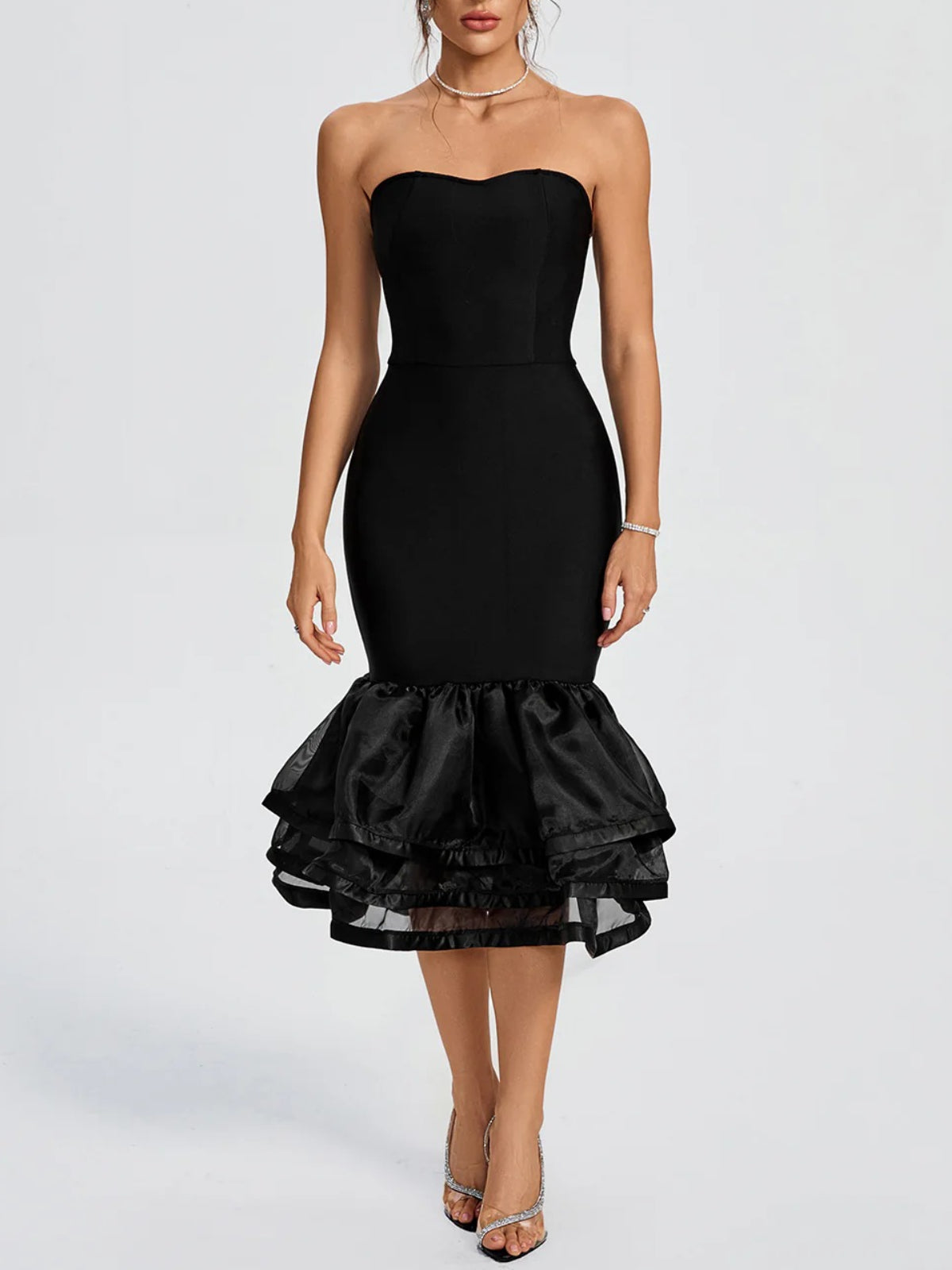 Simple Tube Top Splicing Midi Dress
