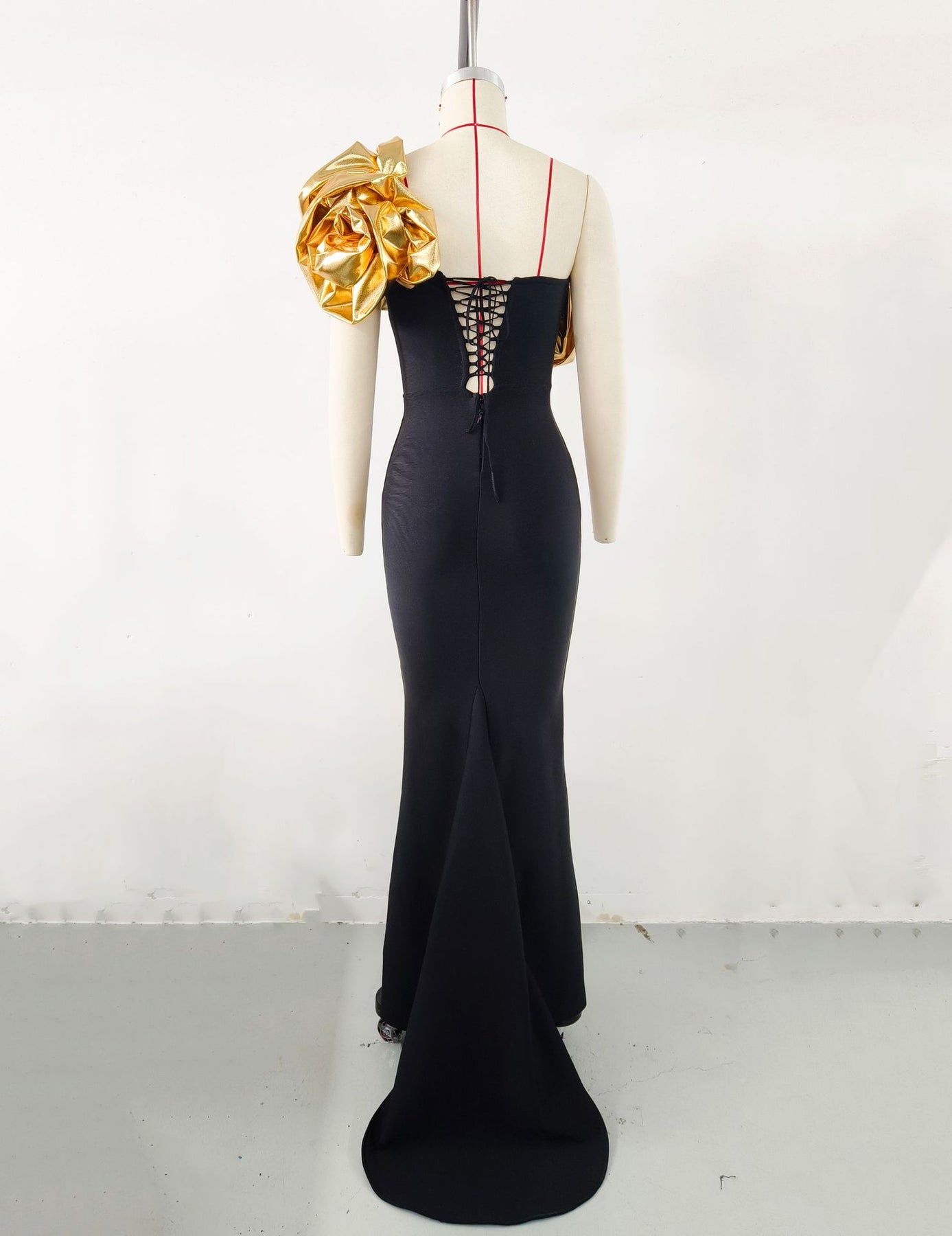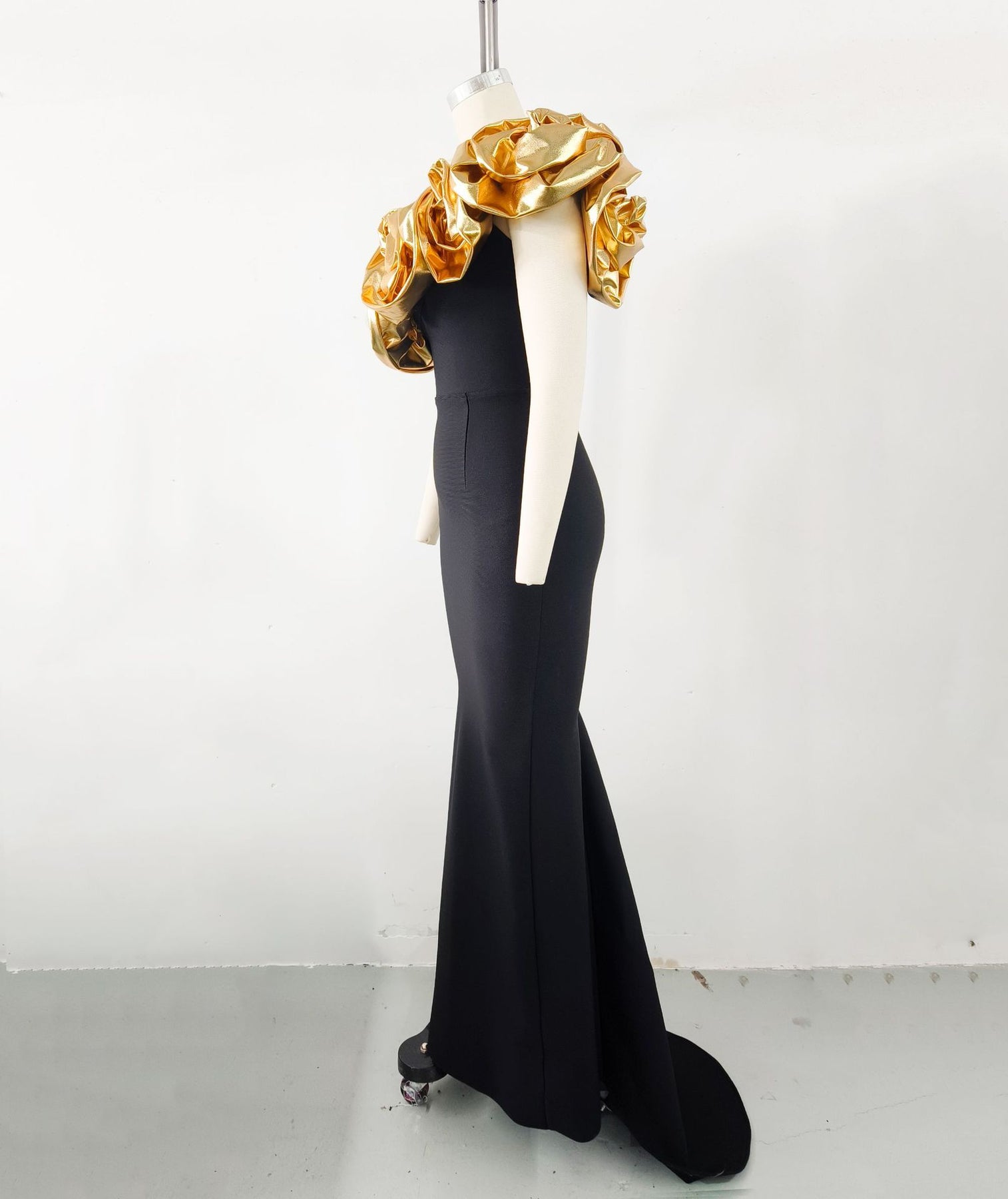 Elegant Gold Flower Slanted Shoulder Dress