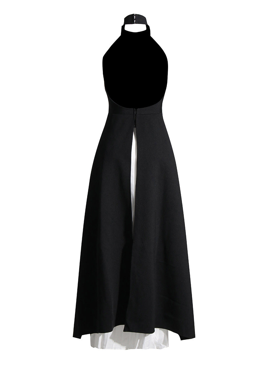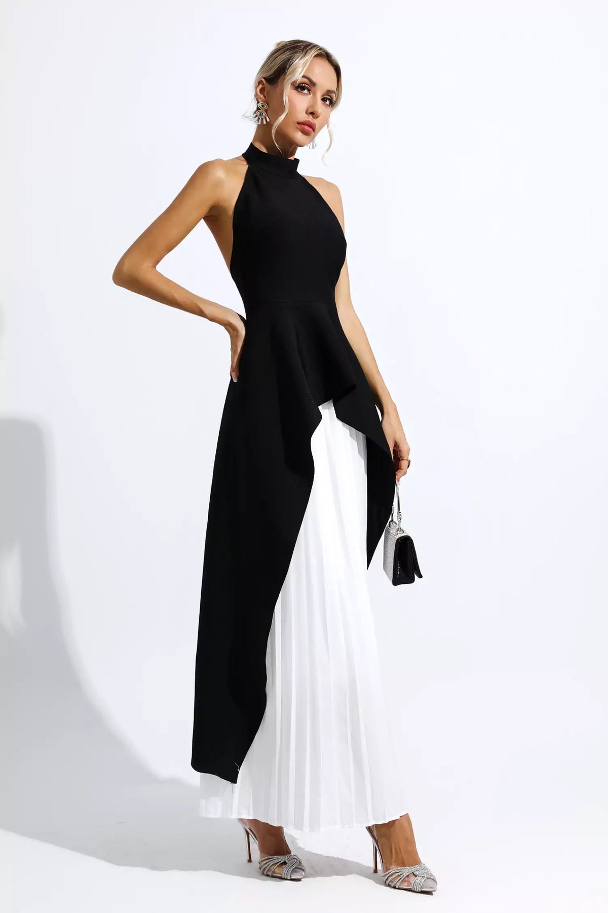 Halter neck sleeveless top pleated skirt fashion suit
