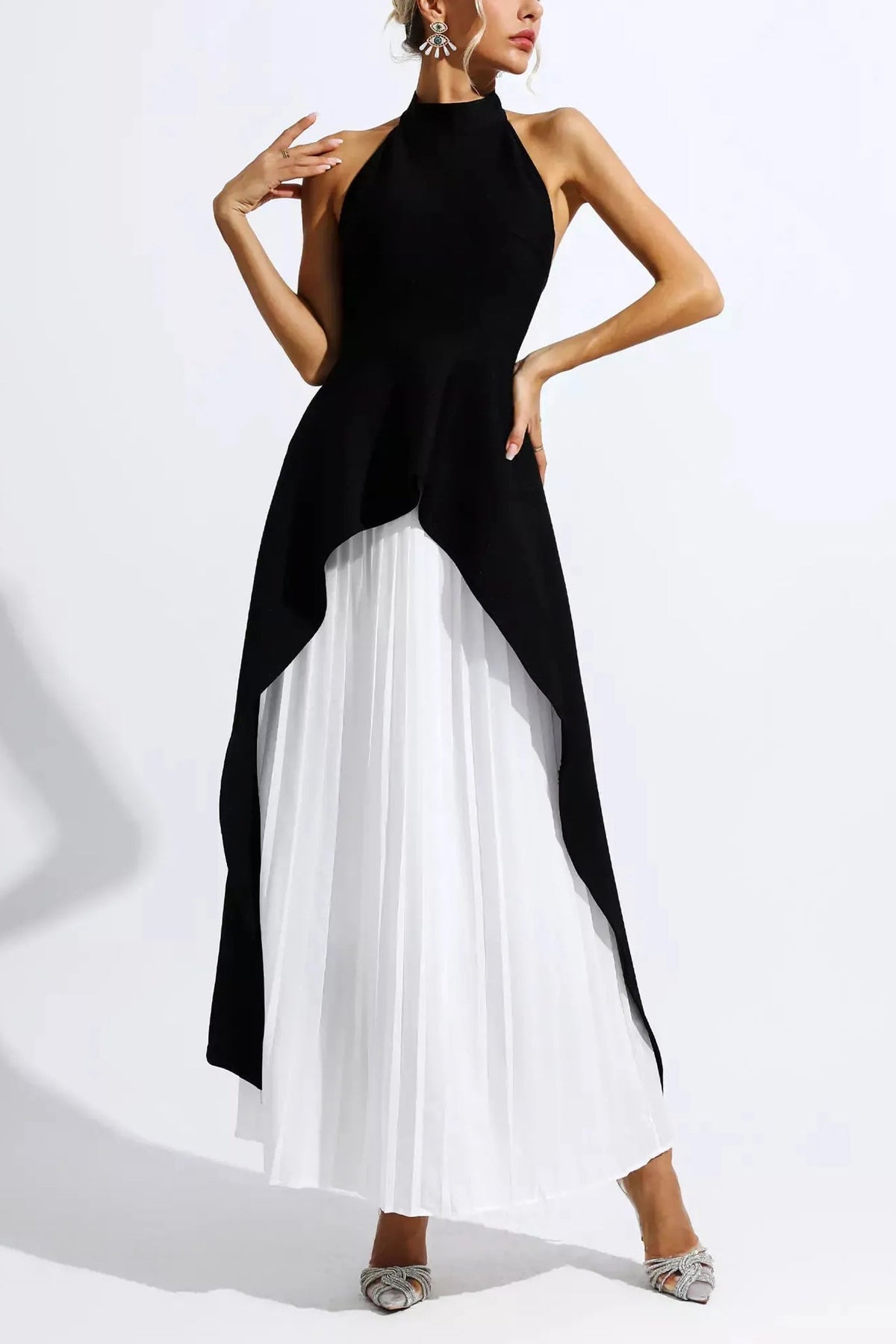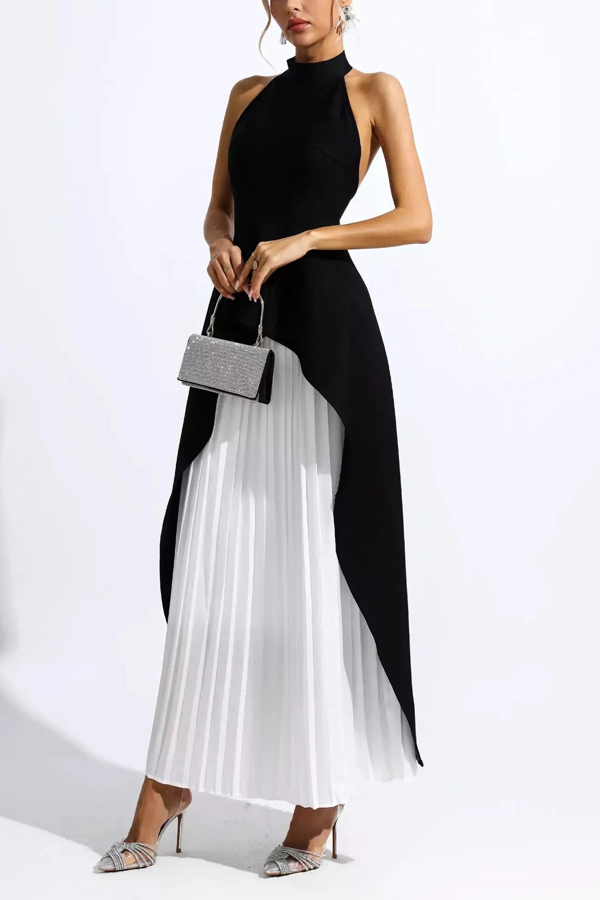 This stunning Kamryn Black White Irregular Set features a crewneck halter neck sleeveless top and maxi skirt. The top is made of comfortable black fabric, and the design of irregular cut details adds a chic and elegant temperament to you. The white skirt has a lot of elasticity and is length to the floor. Go ahead and pair this beautiful set with your favorite flat sandals for a sophisticated look!