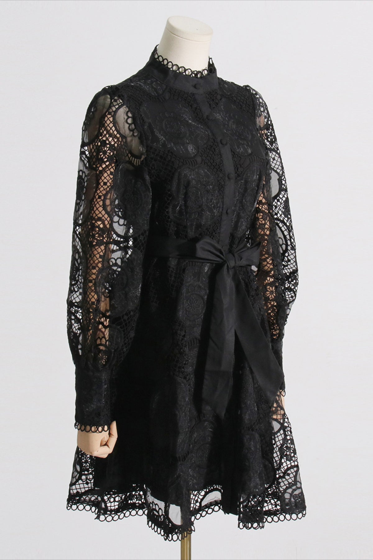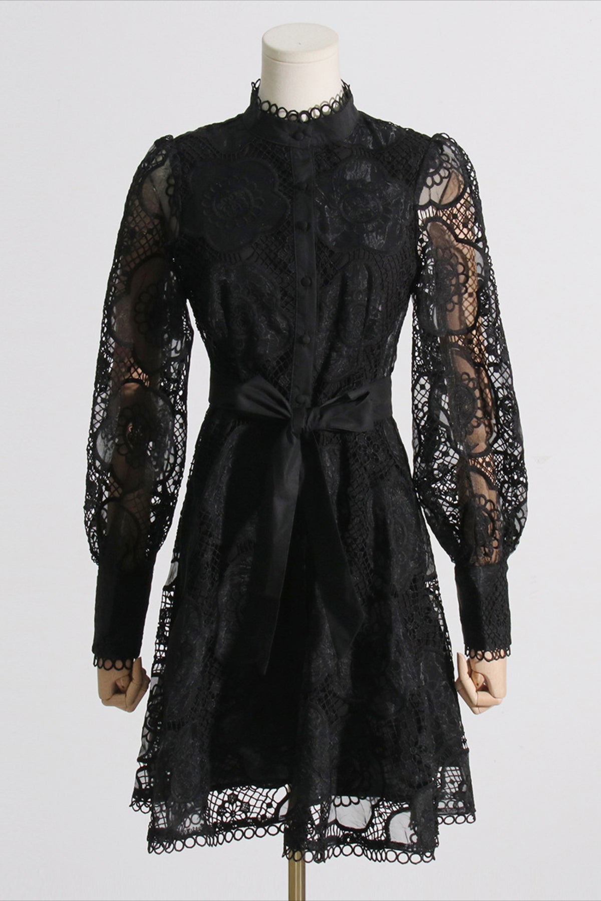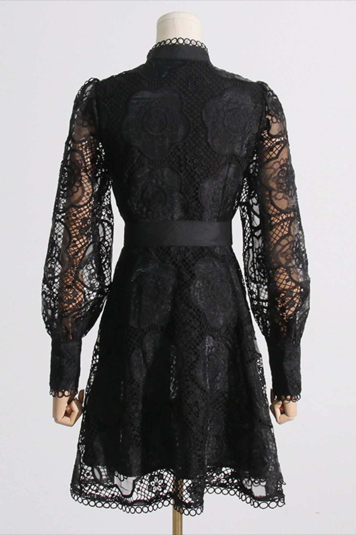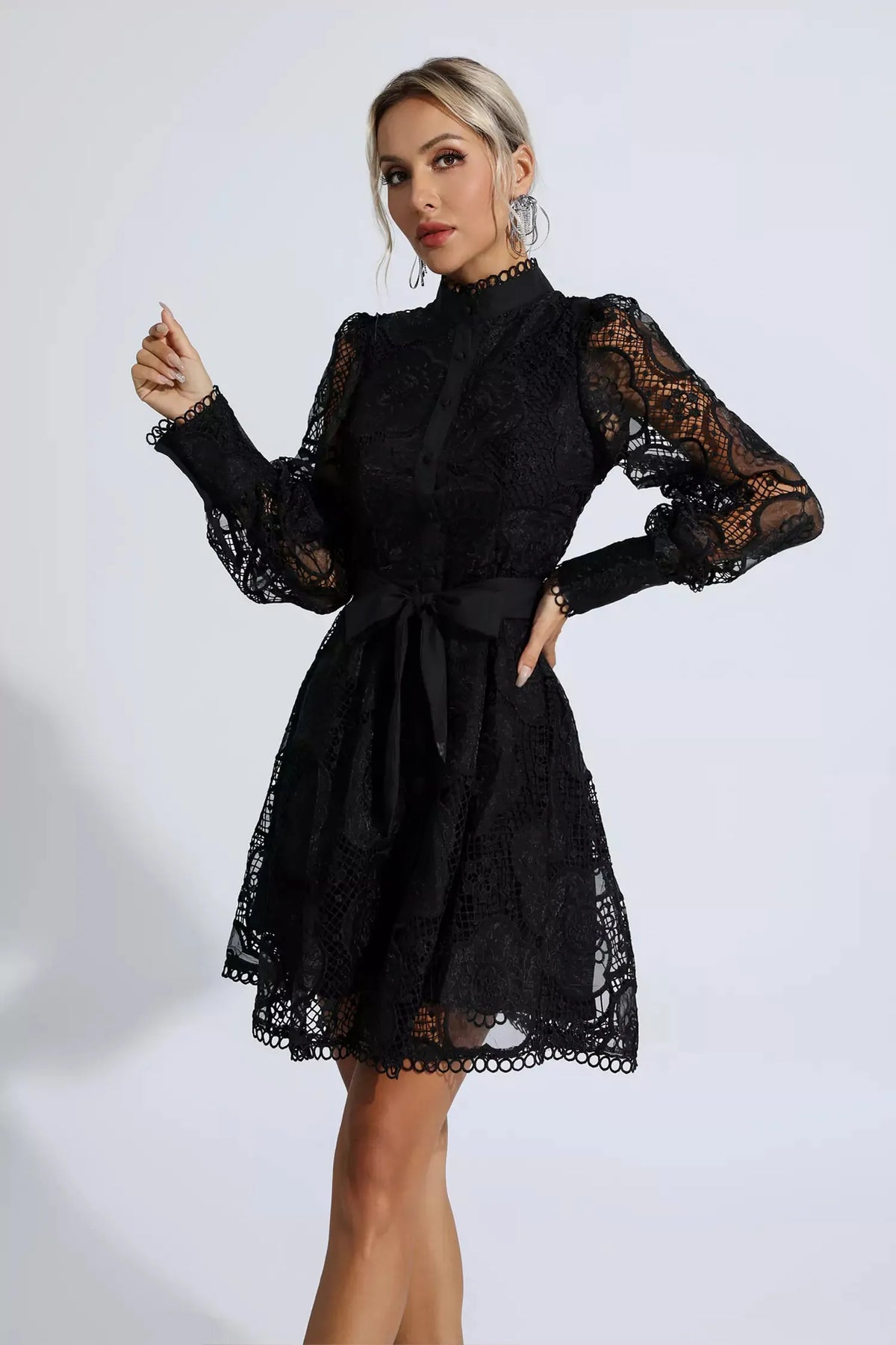 An outfit you can't go wrong with is our Lorelei Black Lace Jacquard Mini Dress. Long sleeves, floral lace, and a mini skirt make this a wardrobe must-have dress. This dress will add a unique appeal to you. Put it on and you will look good on any occasion. Why not buy it quickly?