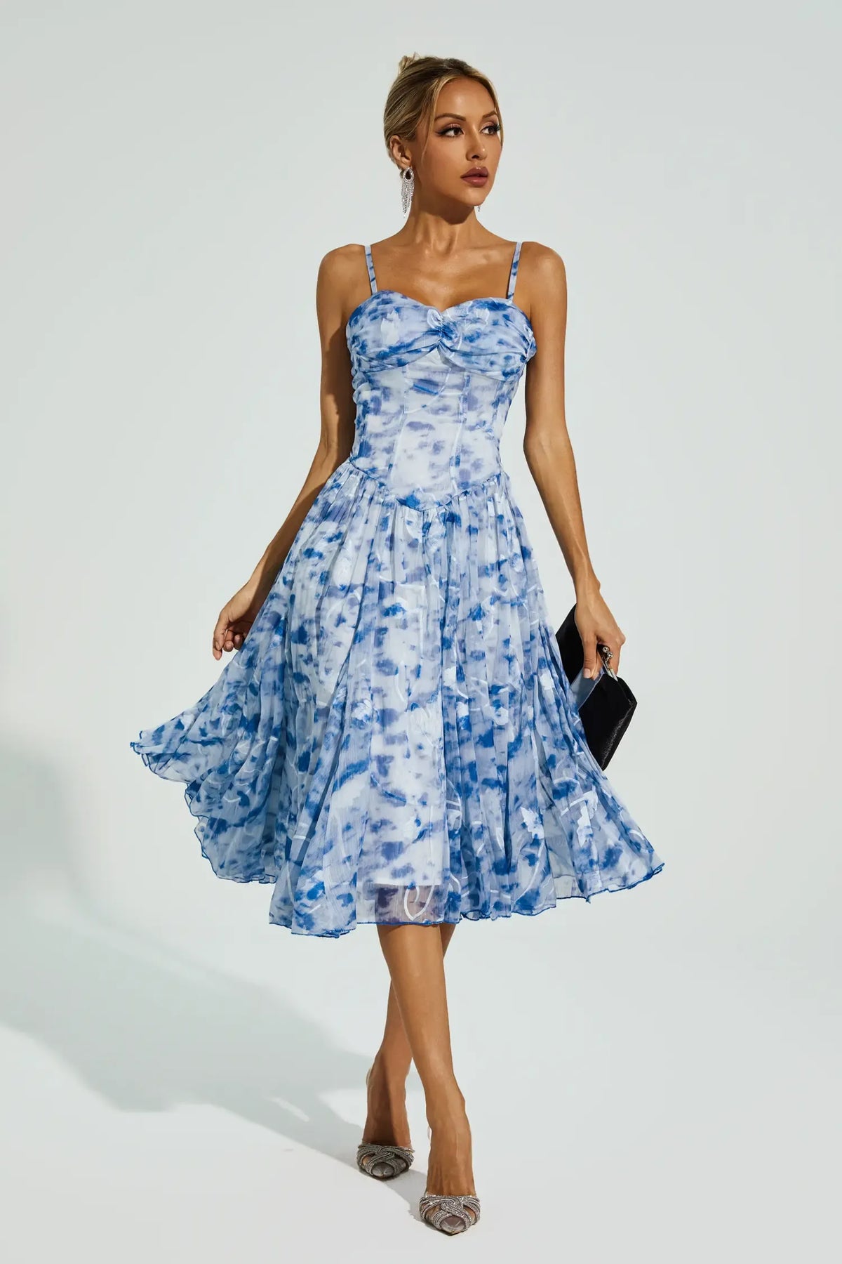 Elevate your style with the Carroll Blue Ink Slip Dress. Crafted with finesse, this mid-length dress exudes elegance and charm. Its tranquil blue hue, reminiscent of ink wash paintings, adds a touch of sophistication. Perfect for vacations or special occasions, this dress effortlessly captures a refreshing holiday vibe.