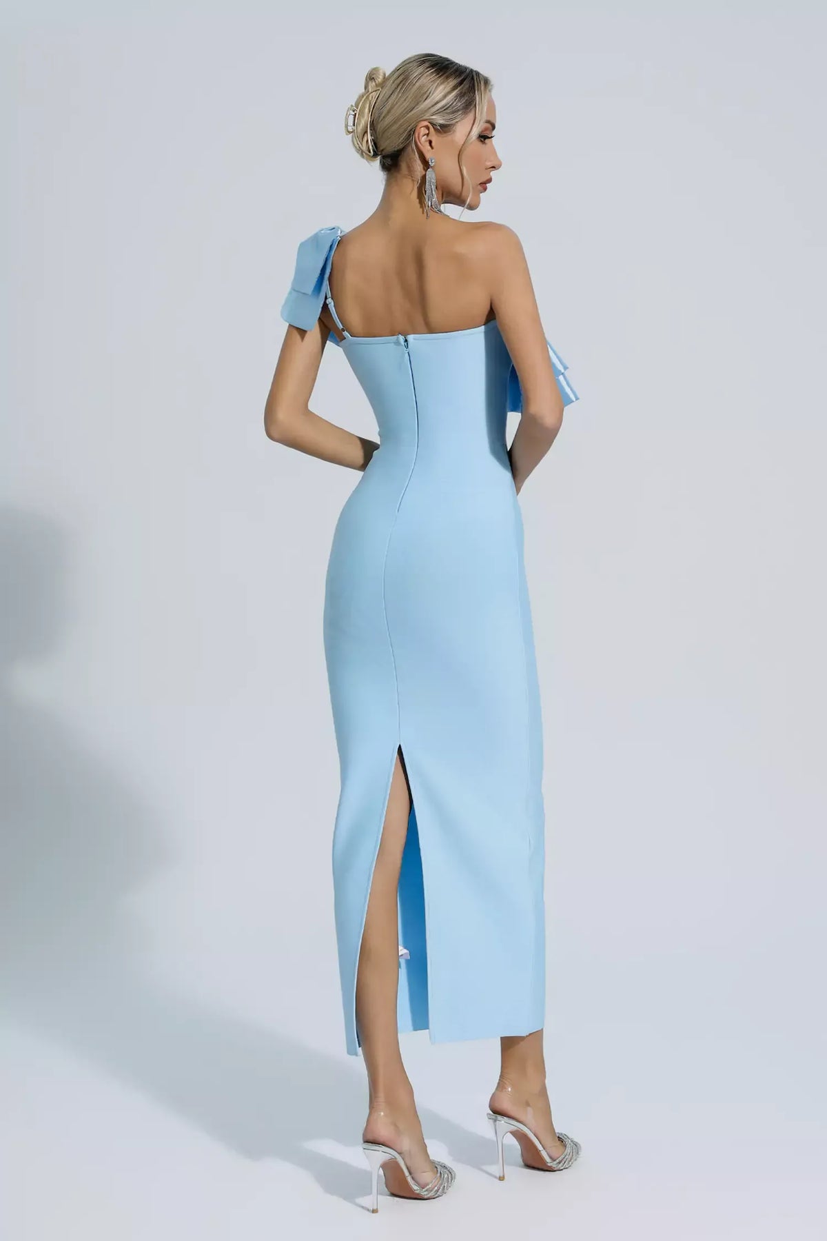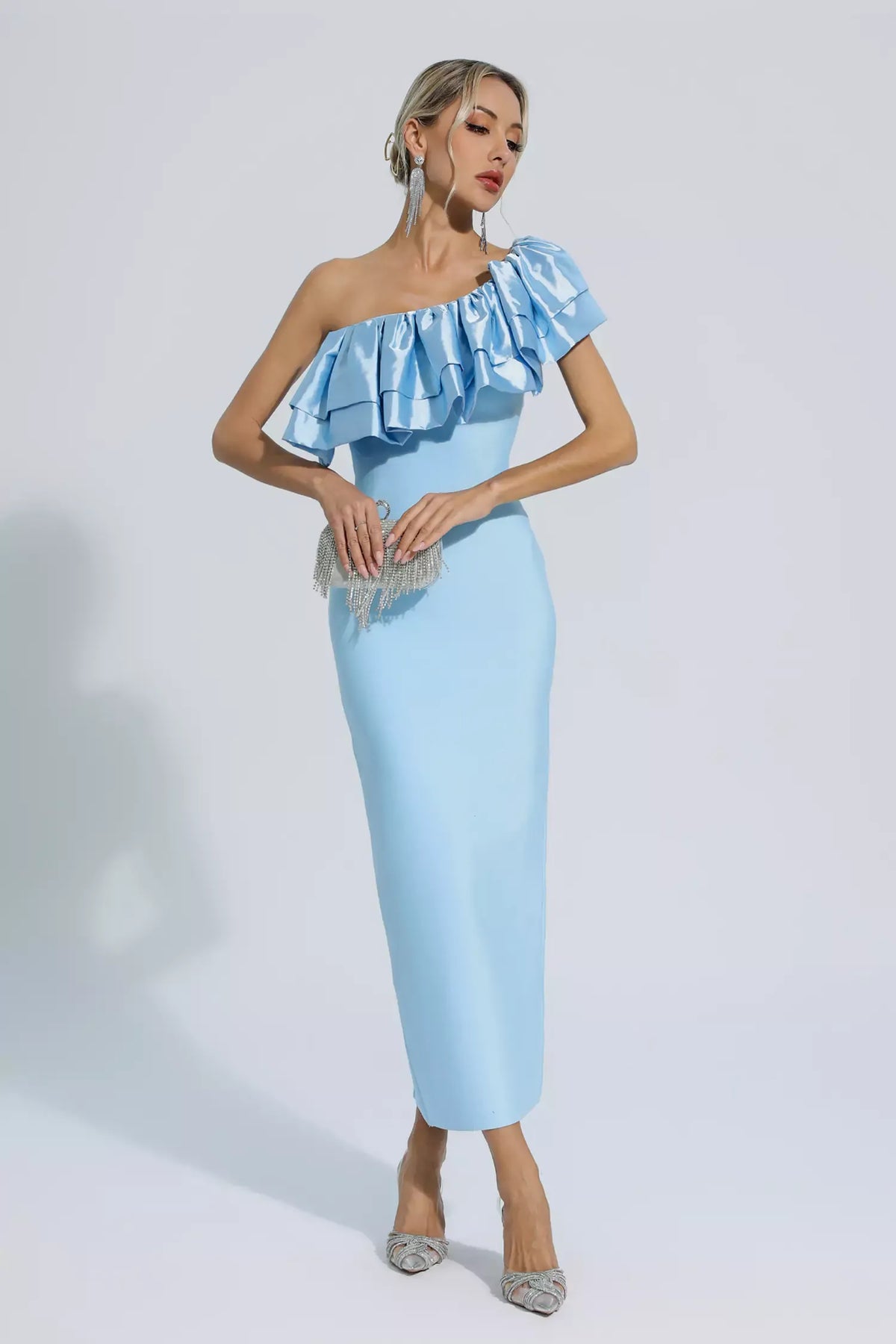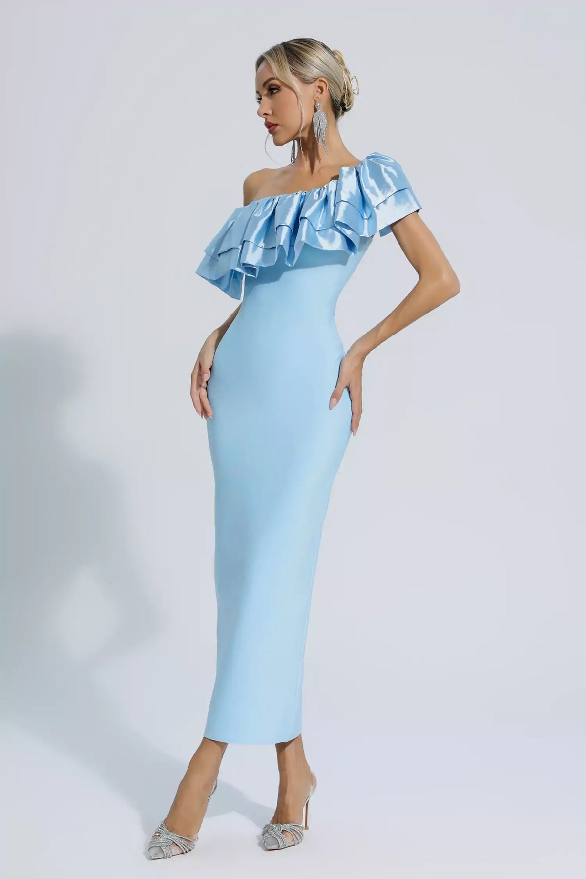 Emerie Blue One Shoulder Ruffles Bandage Dress
