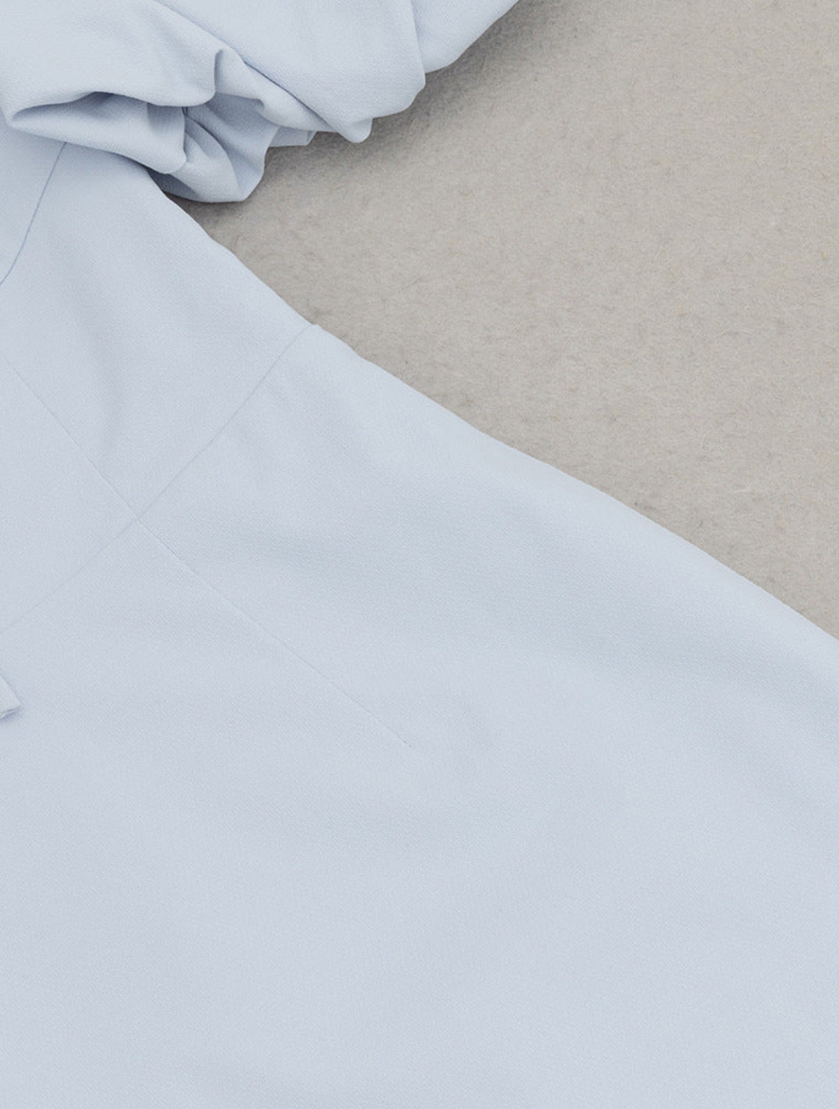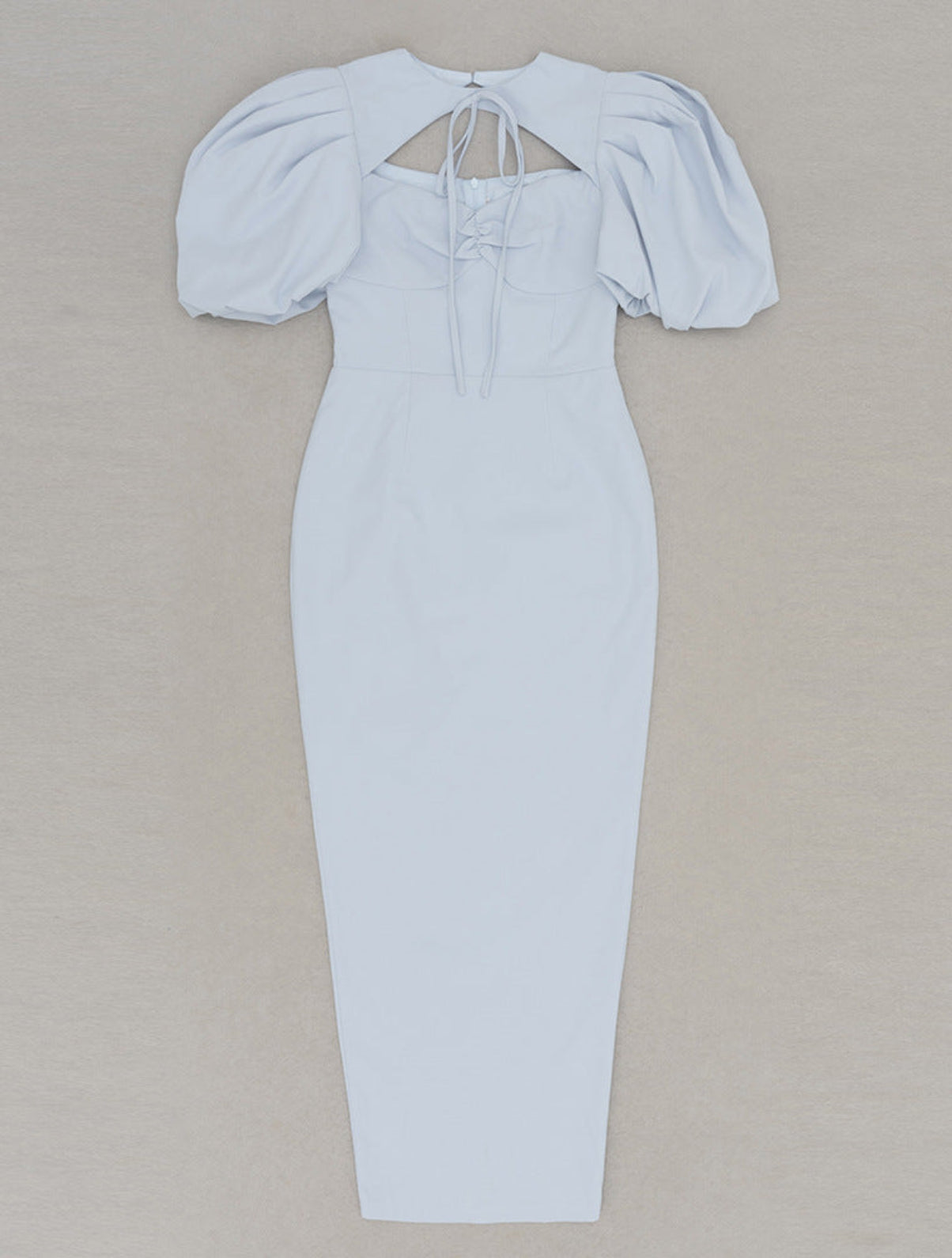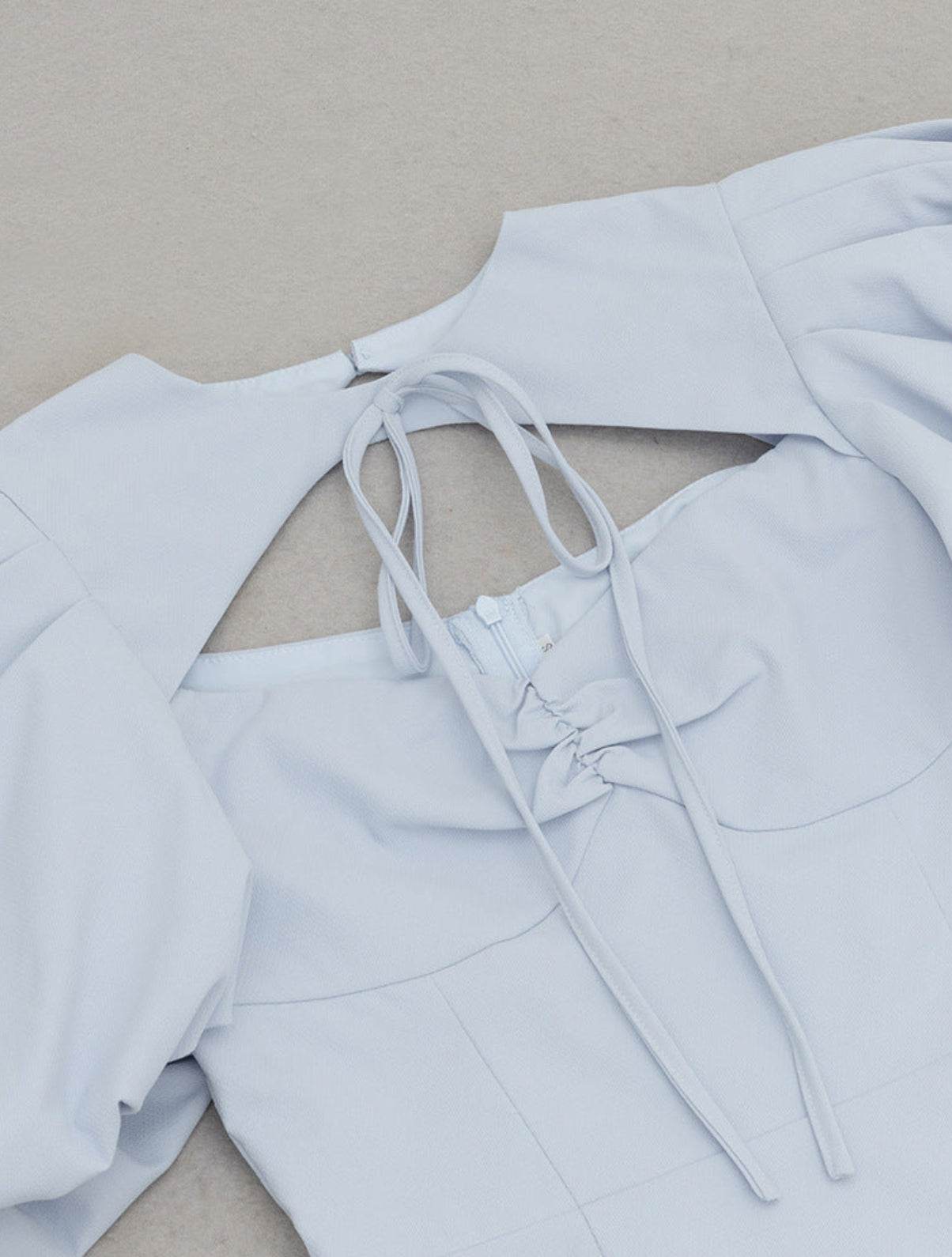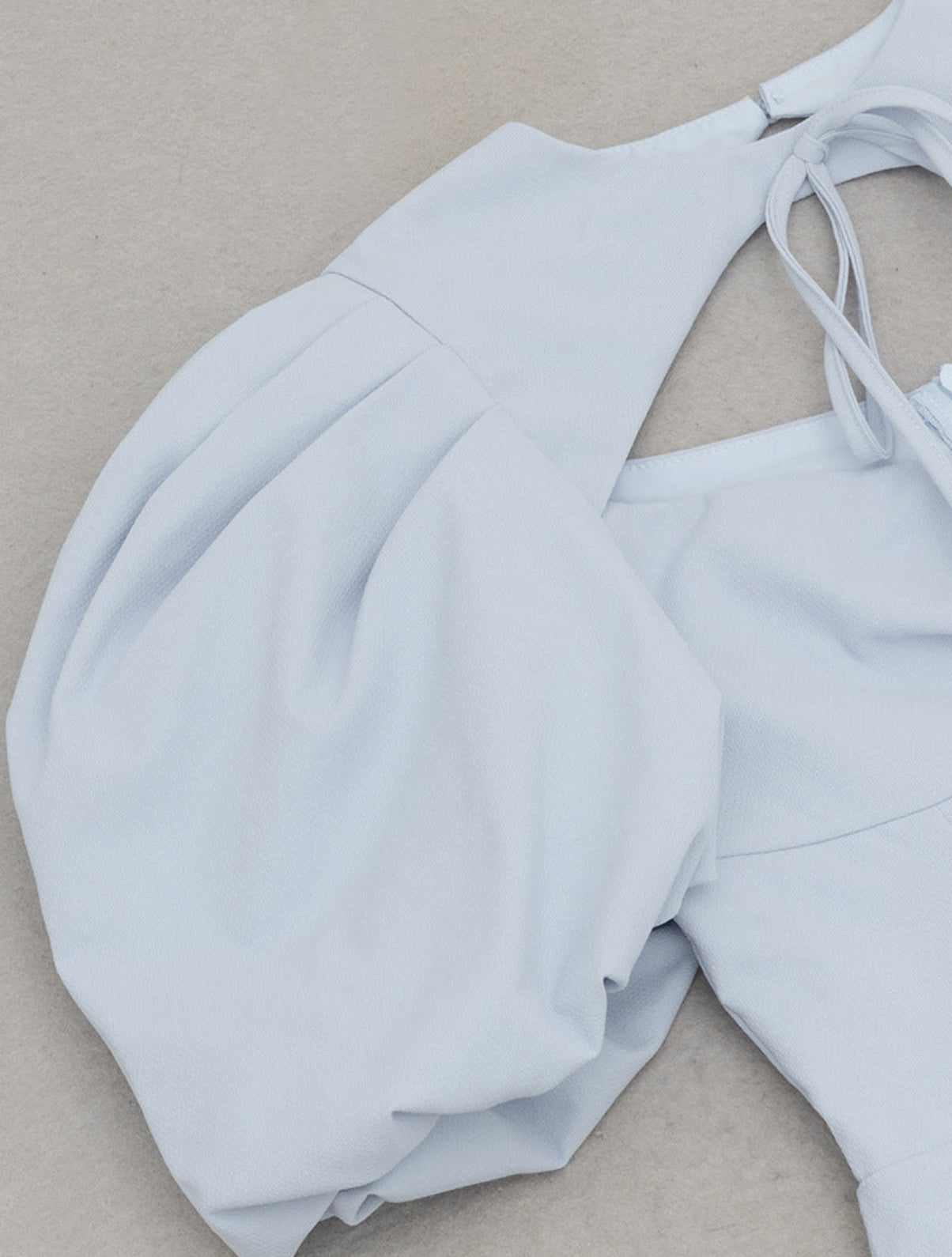 Stylish Solid Color Strappy Bubble Sleeve Dress
