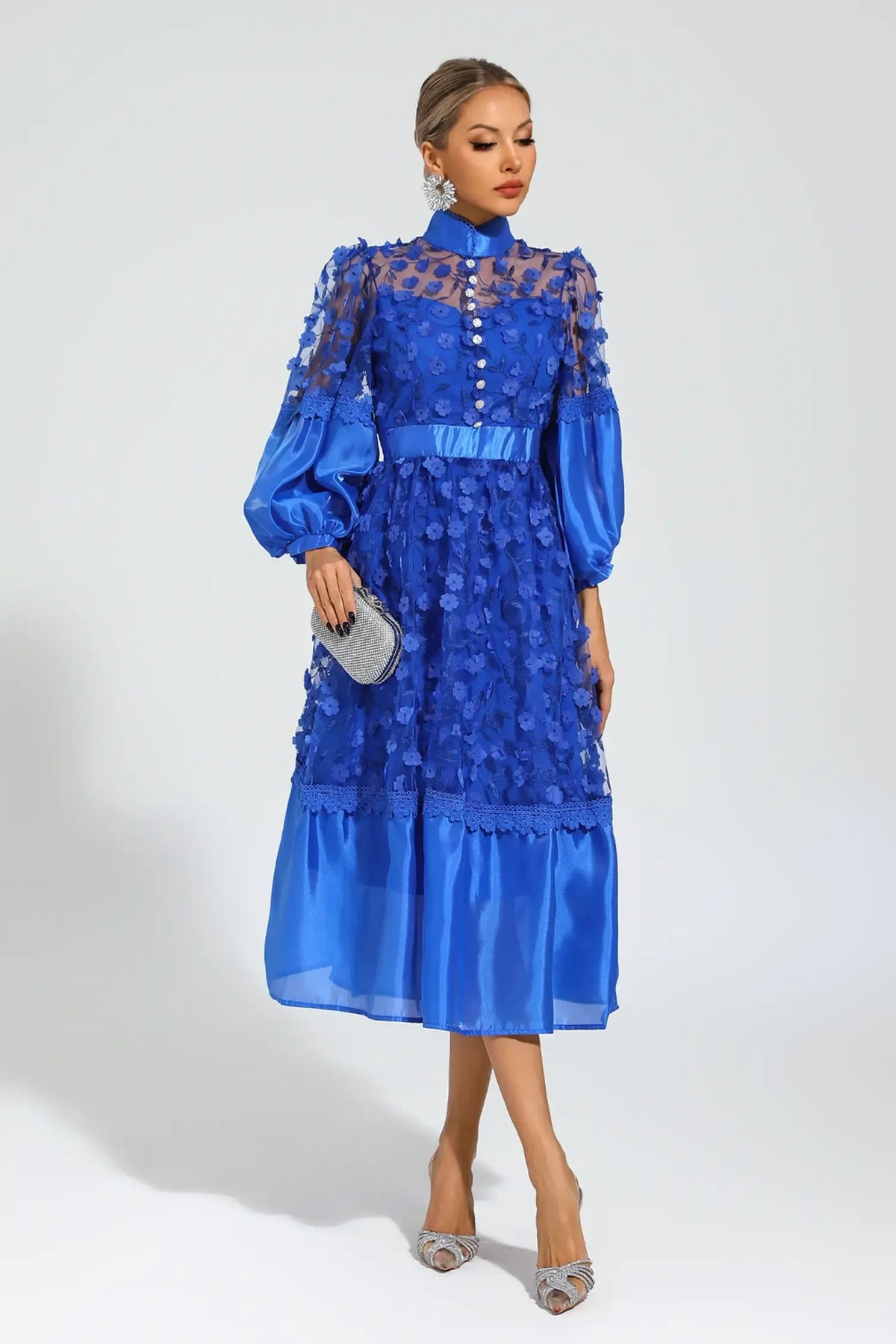 Temperament Three-dimensional Flower Midi Dress