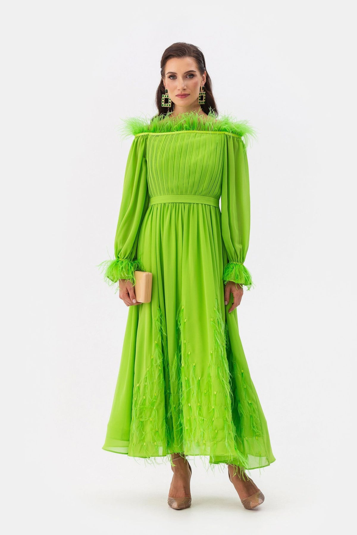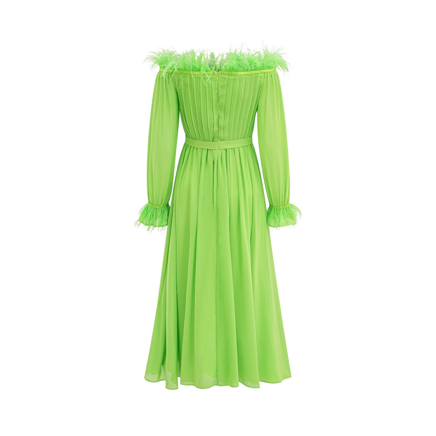 Anna Feather One Shoulder Trumpet Long Sleeve Dress