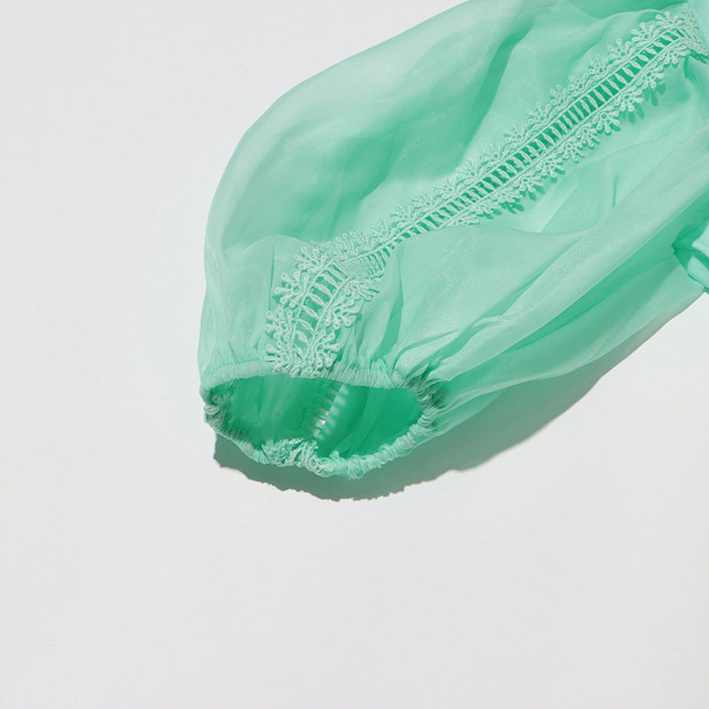 EMMA Lantern Sleeve Water-soluble Embroidery Strap Waist Long Skirt