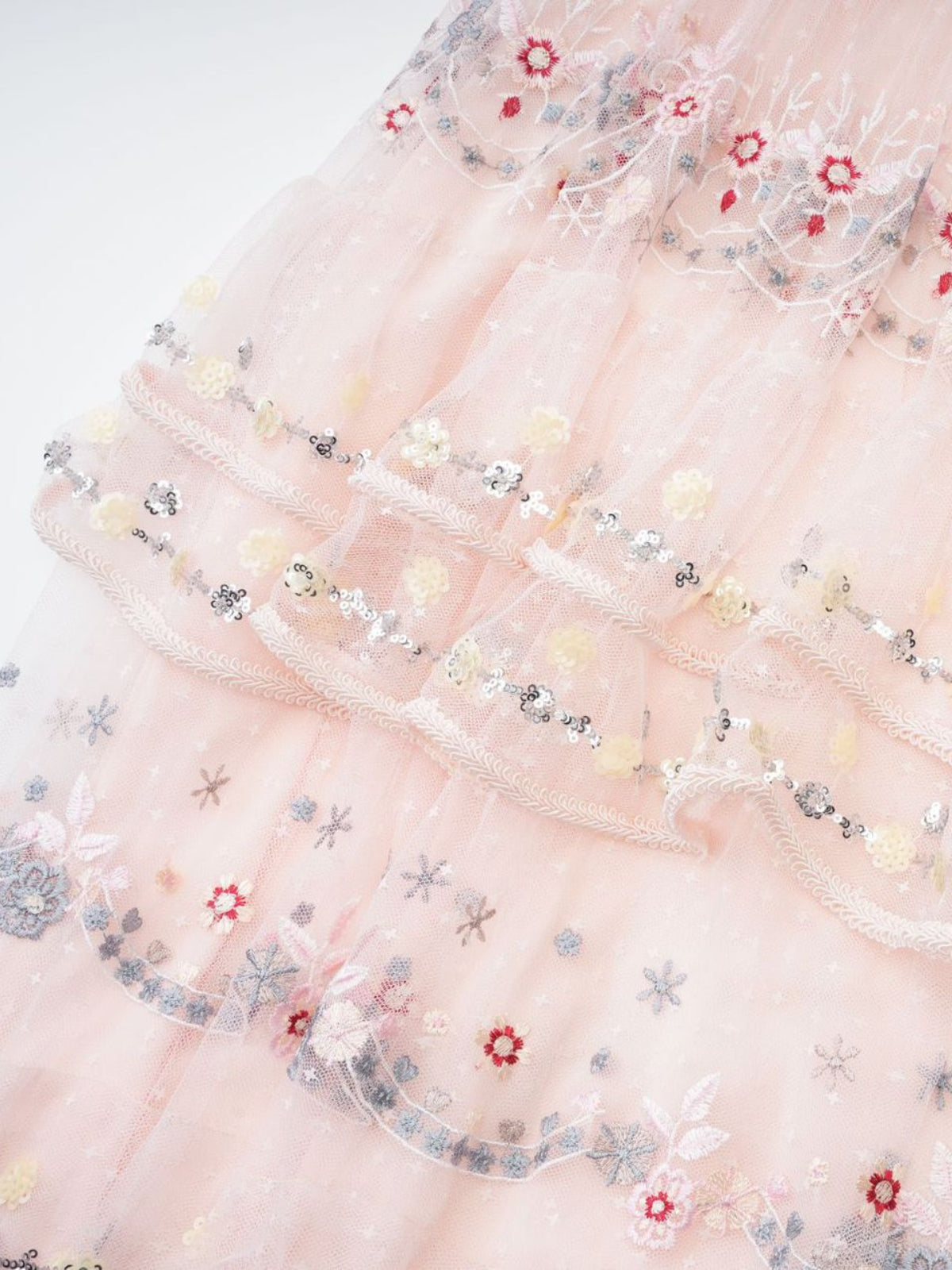 Sequins fabric, which is made of tiny, sparkly discs known as sequins, gives glitz and flair to dresses it is used on.
