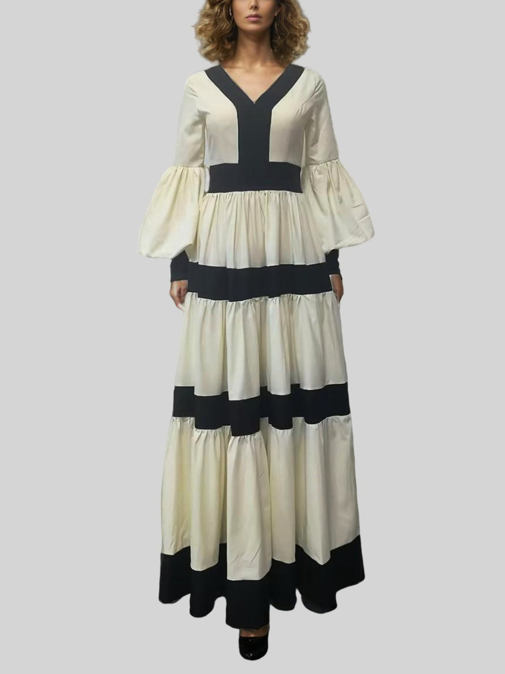 Scarlett White Contrast Color Balloon Sleeve Dress