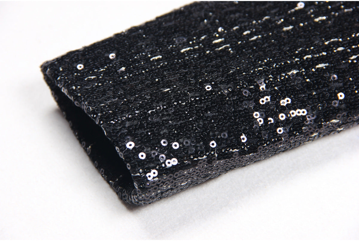 Sequins fabric, which is made of tiny, sparkly discs known as sequins, gives glitz and flair to dresses it is used on.