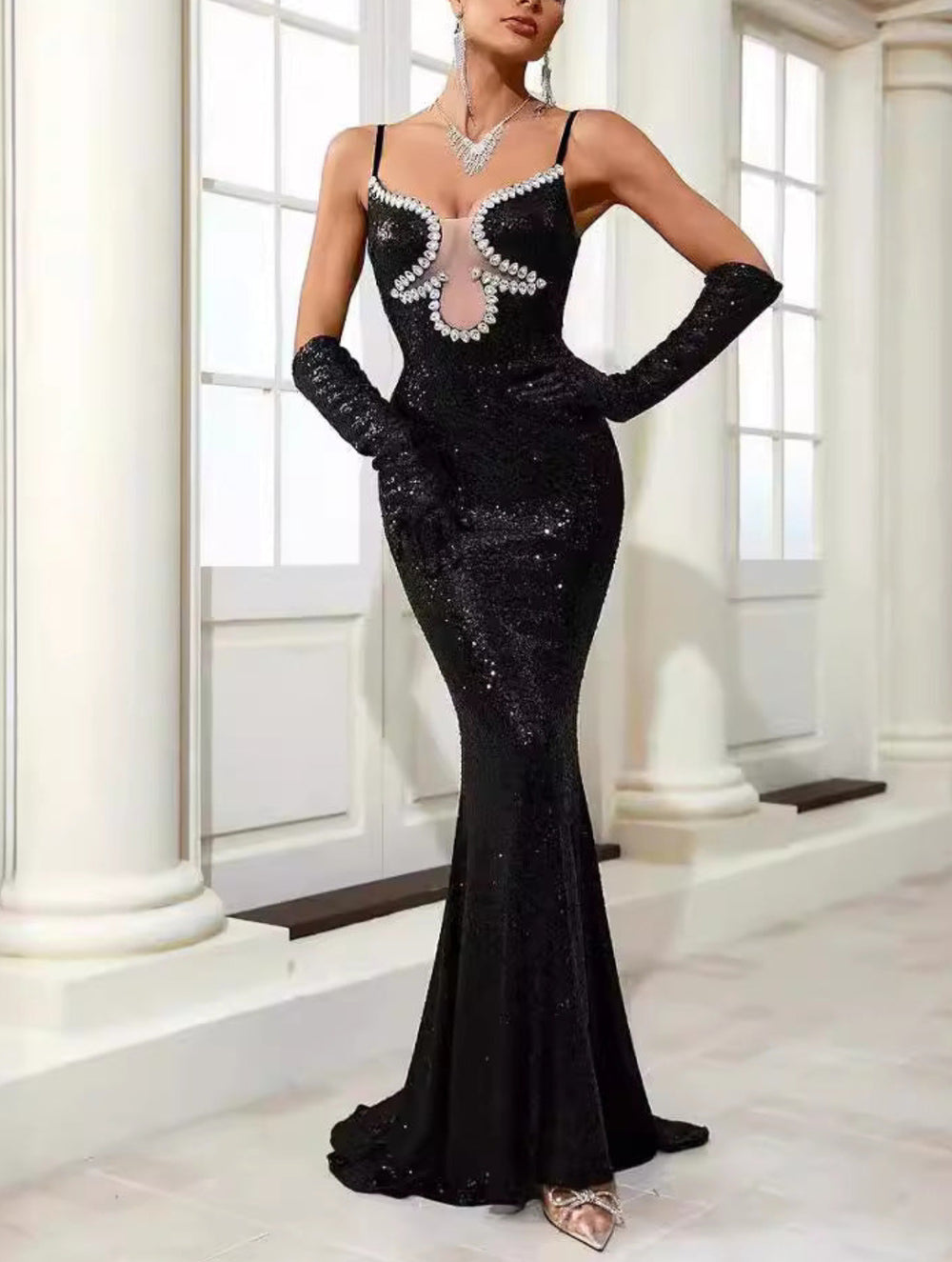 Fashion Sequined Diamond Maxi Dress