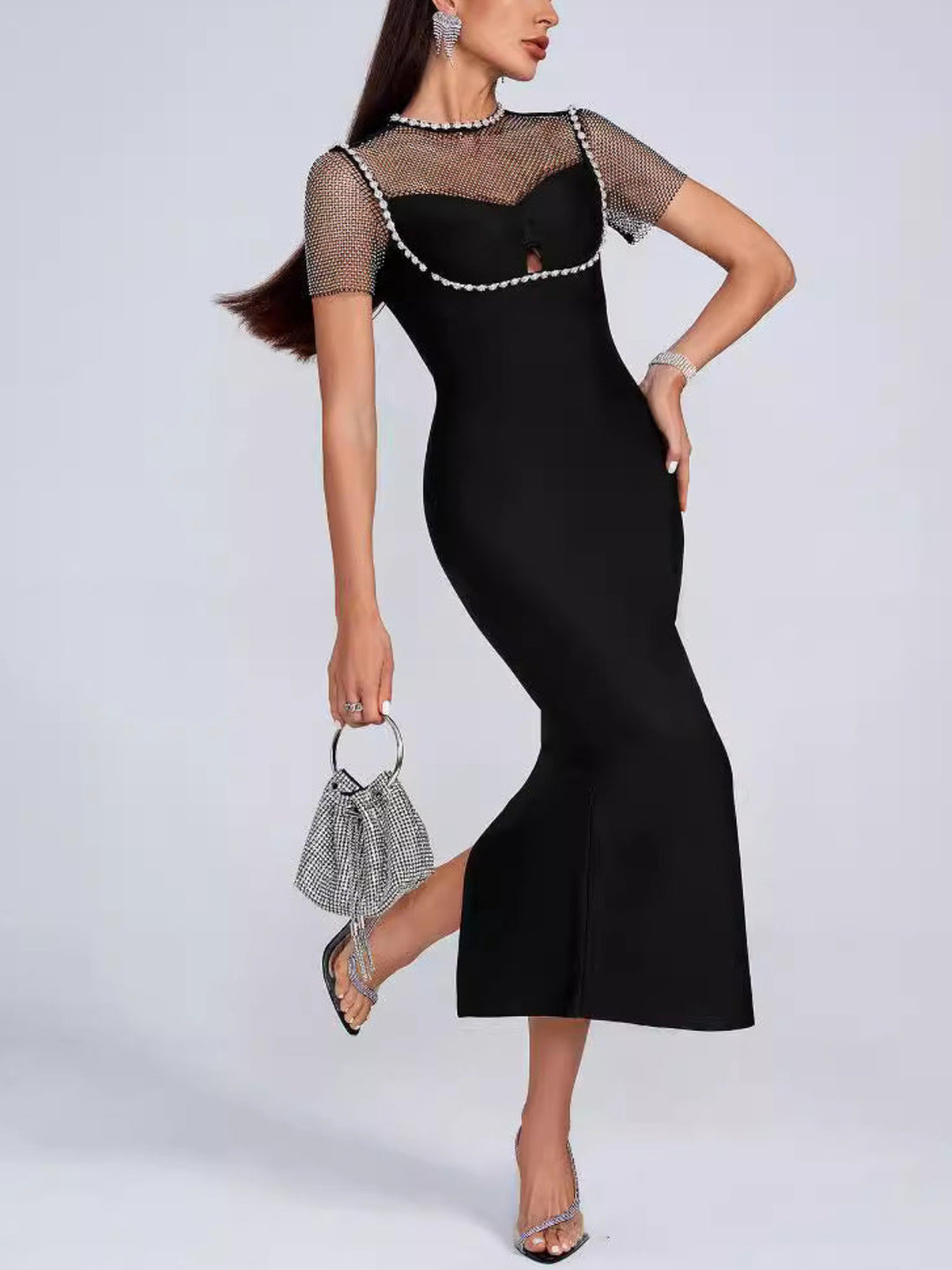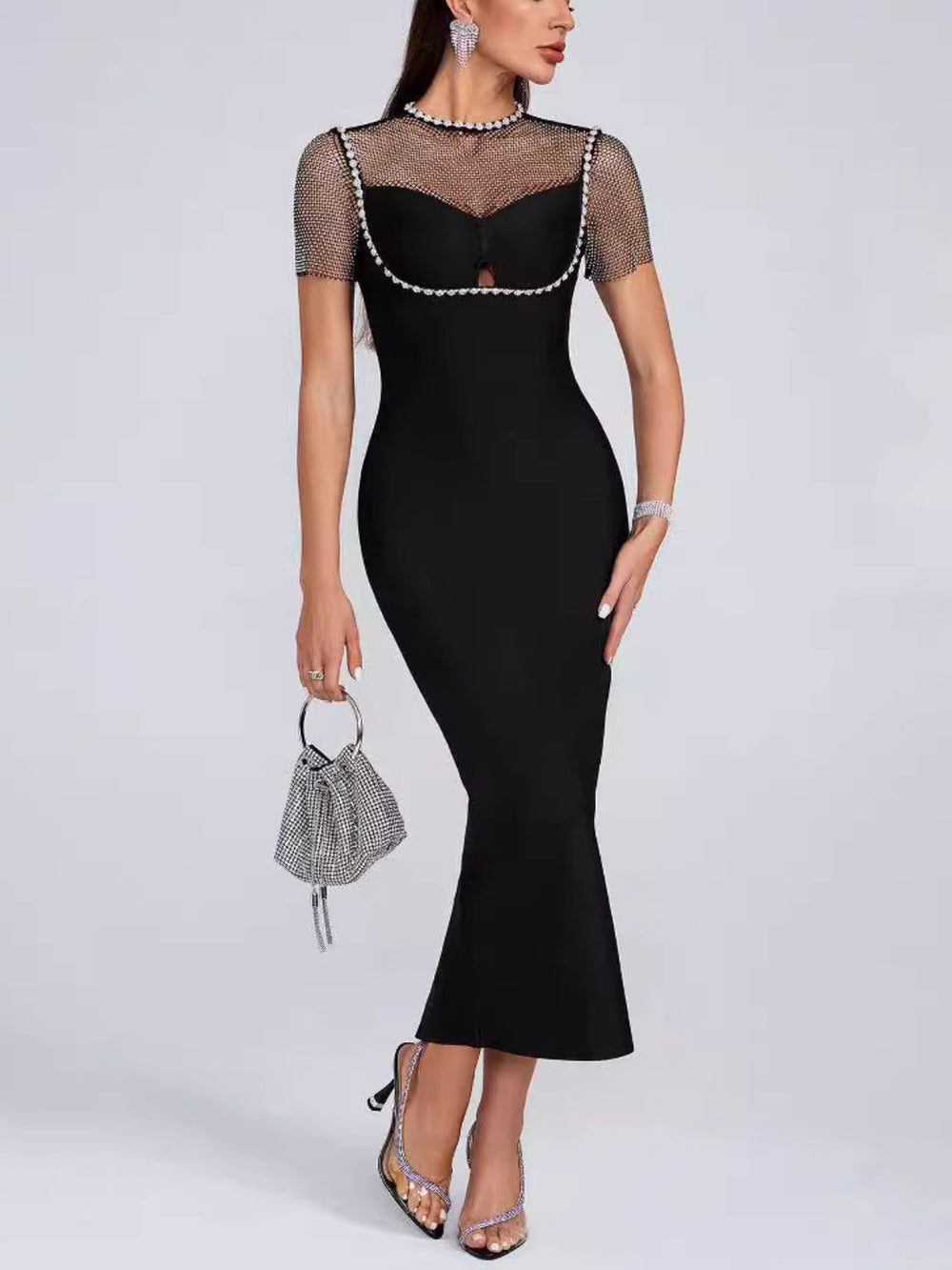 Elegant Diamond Mesh Maxi Dress