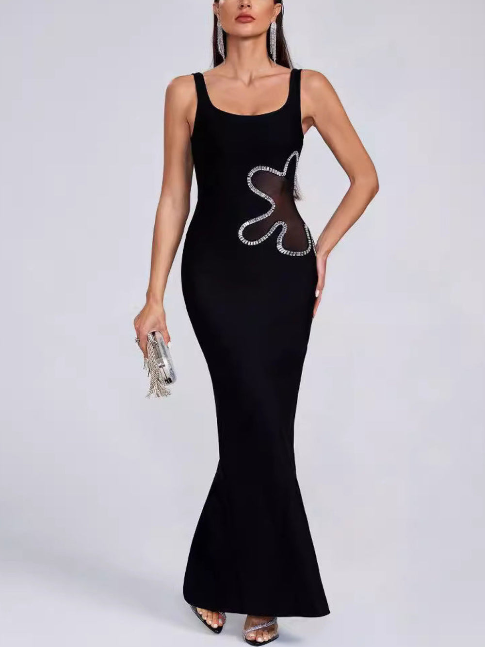 Fashion Suspender Diamond Maxi Dress