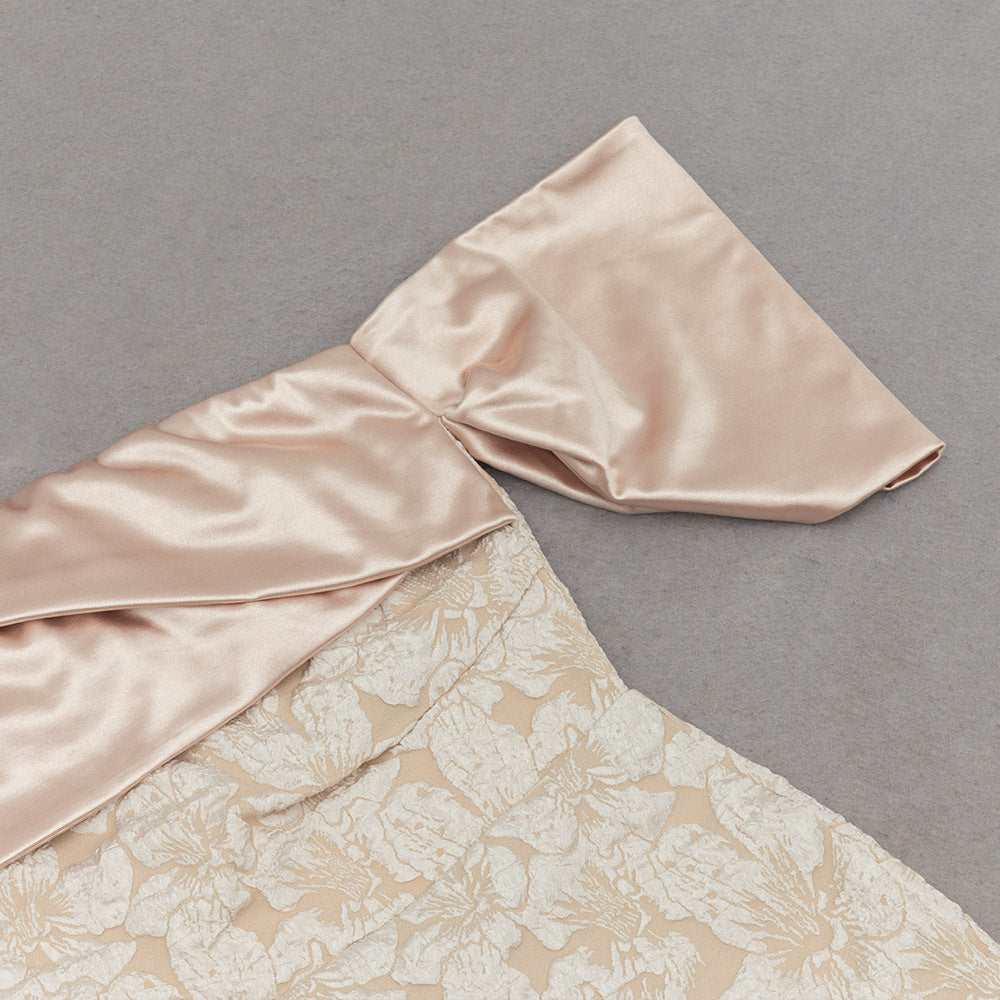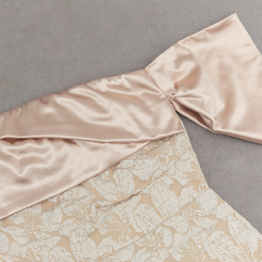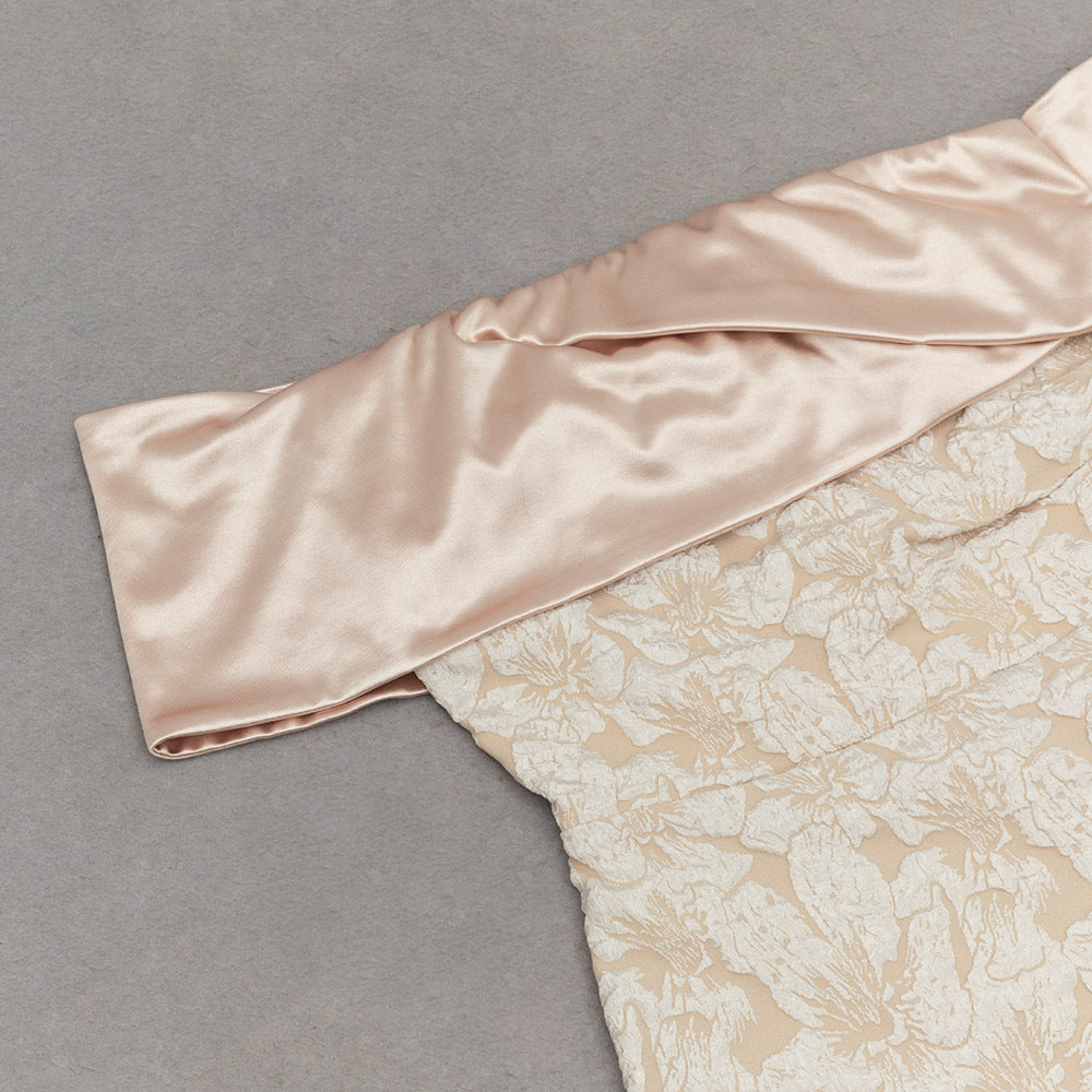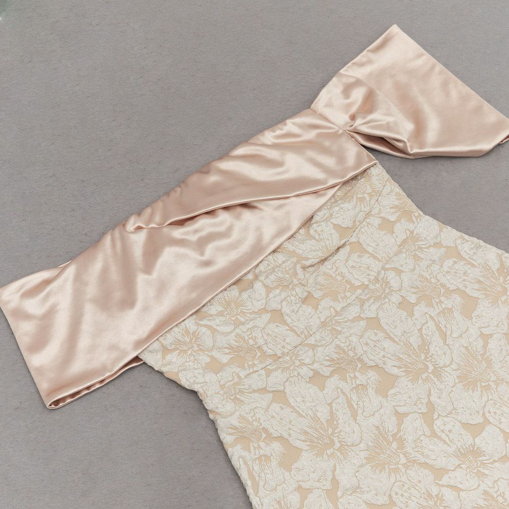 Elegant Tube Top Jacquard Midi Dress