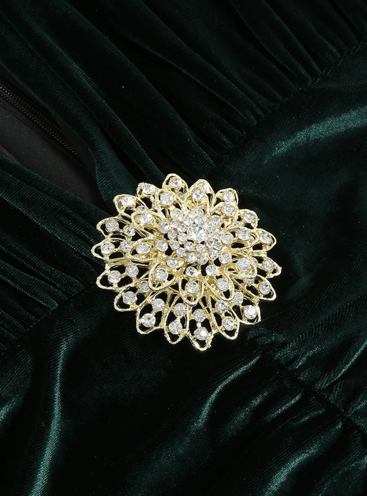 Sequins fabric, which is made of tiny, sparkly discs known as sequins, gives glitz and flair to dresses it is used on.