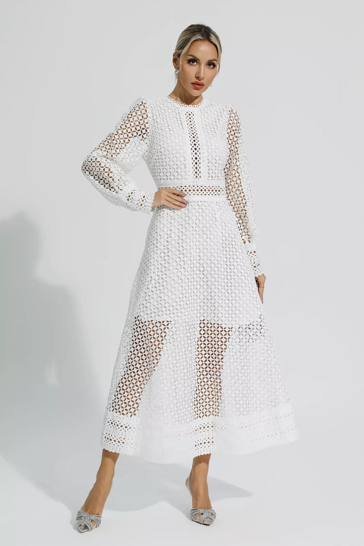 There is no doubt that you will receive many compliments when you wear the Monroe White Hollow Long Sleeve Maxi Dress. This elegant dress features long cut-out sleeves, a nipped-in waist, and an A-line skirt for a charming look. It's suitable for any occasion. Simply pair with heels or flat sandals to complete the look. Do not hesitate.