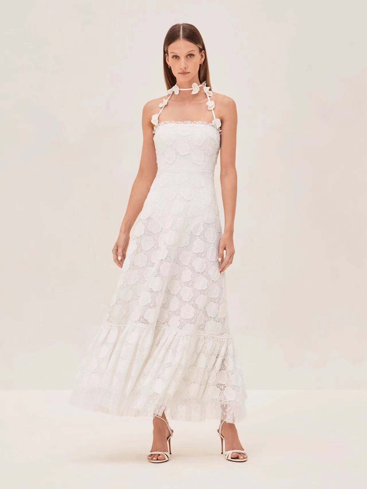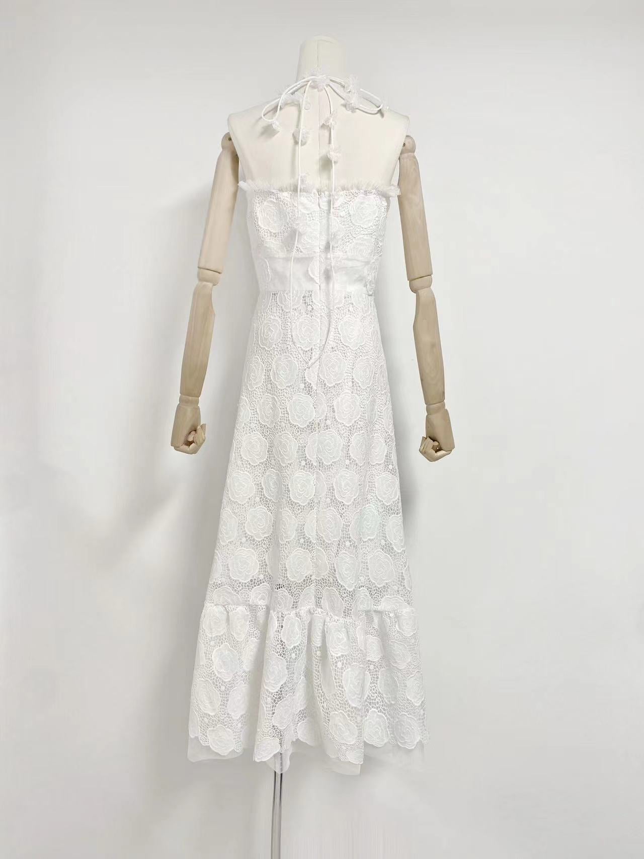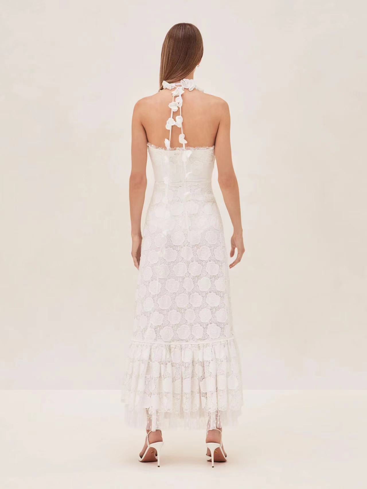Vintage Tube Top Nail Flower Hollow Maxi Dress
