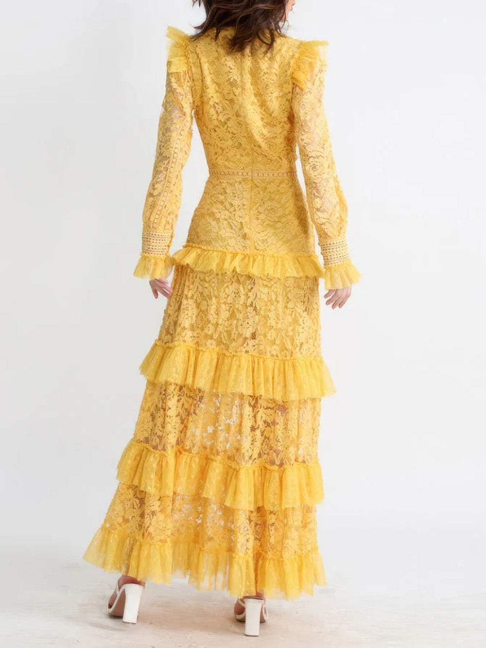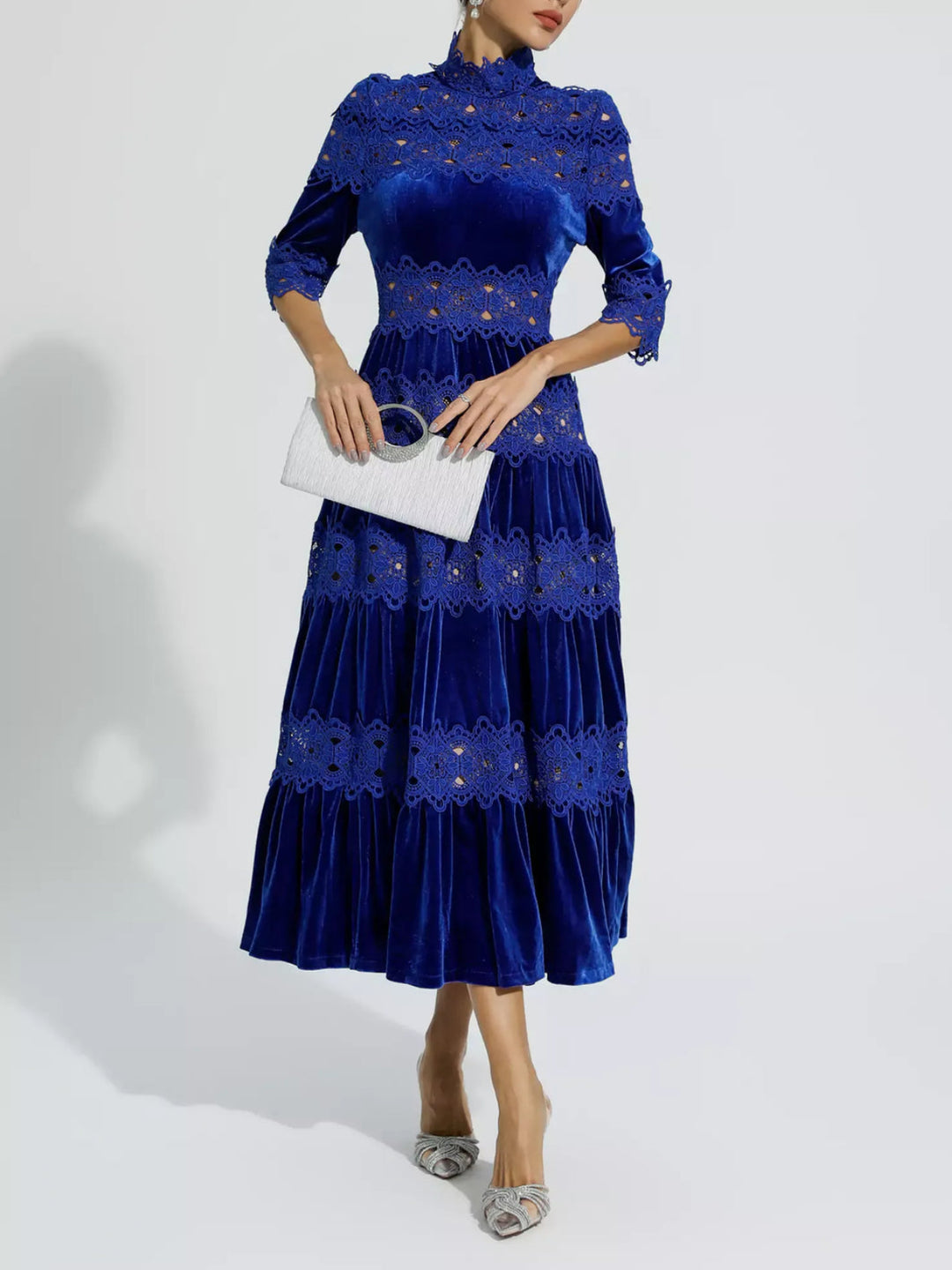 Elegant Bubble Sleeve Lace Mid-length Dress