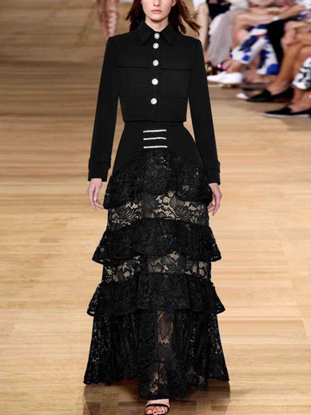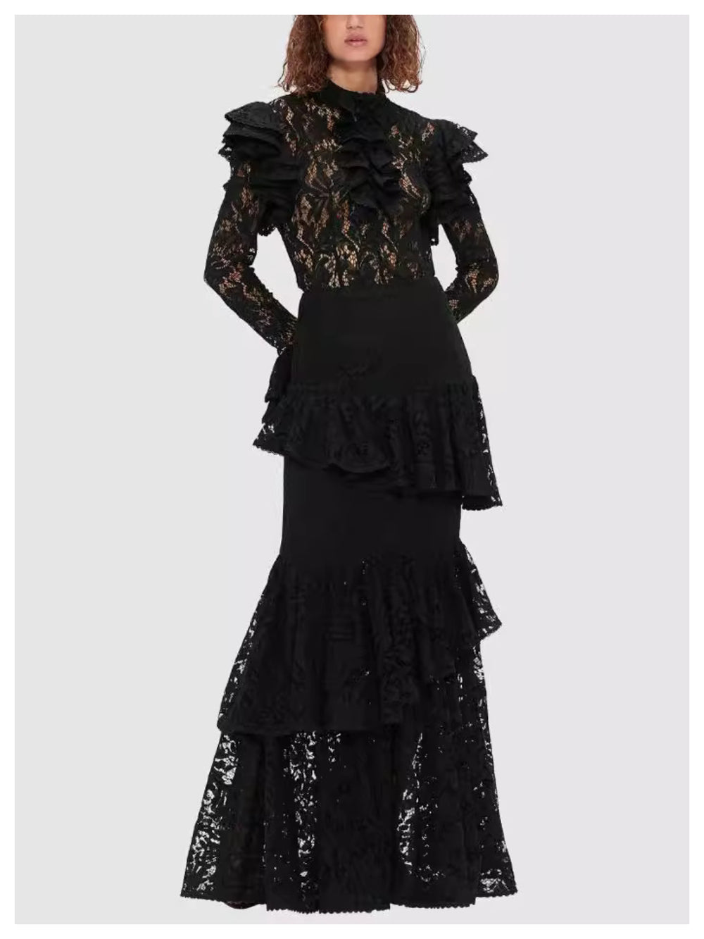 Black Tube Top Lace Sequin Mesh Maxi Dress