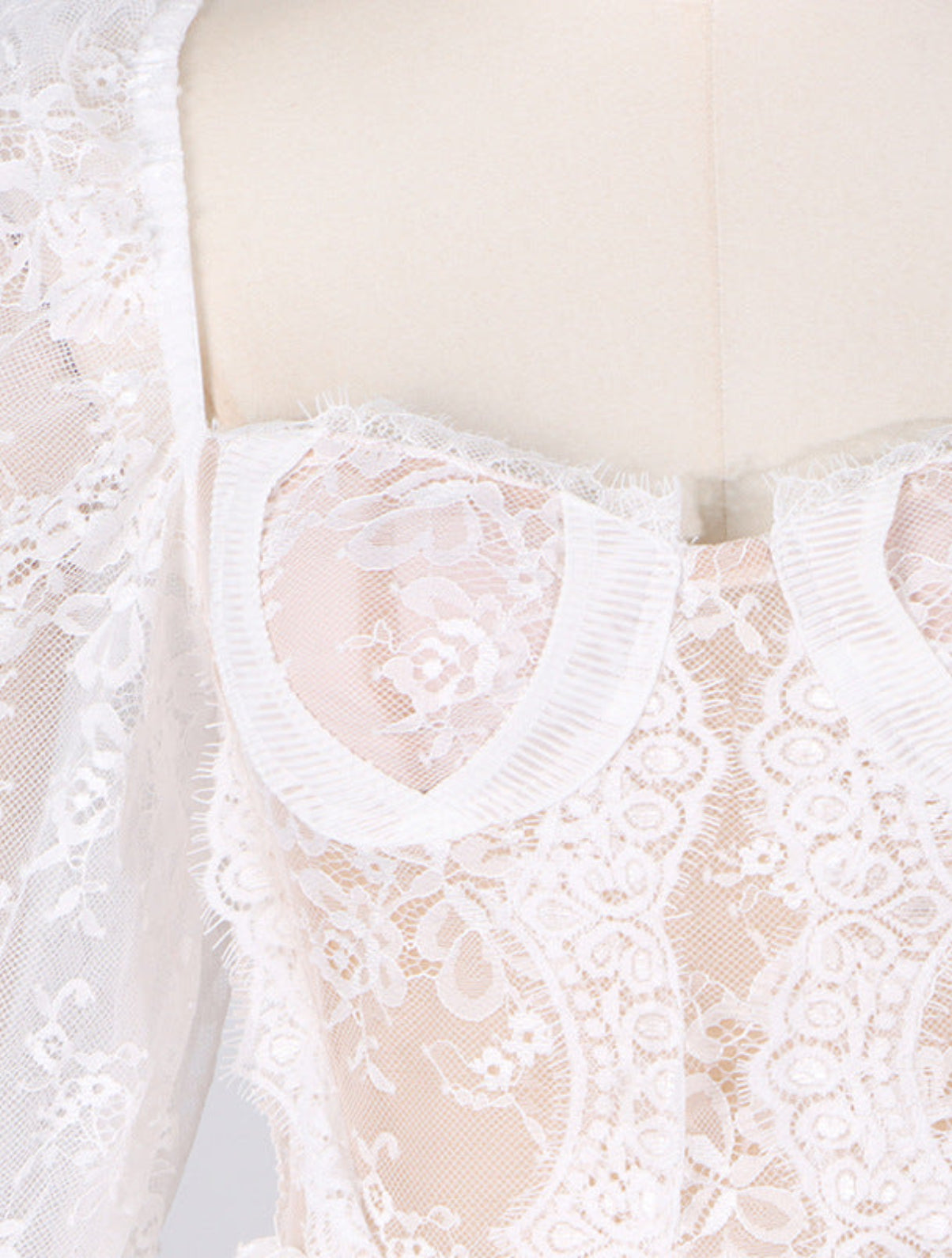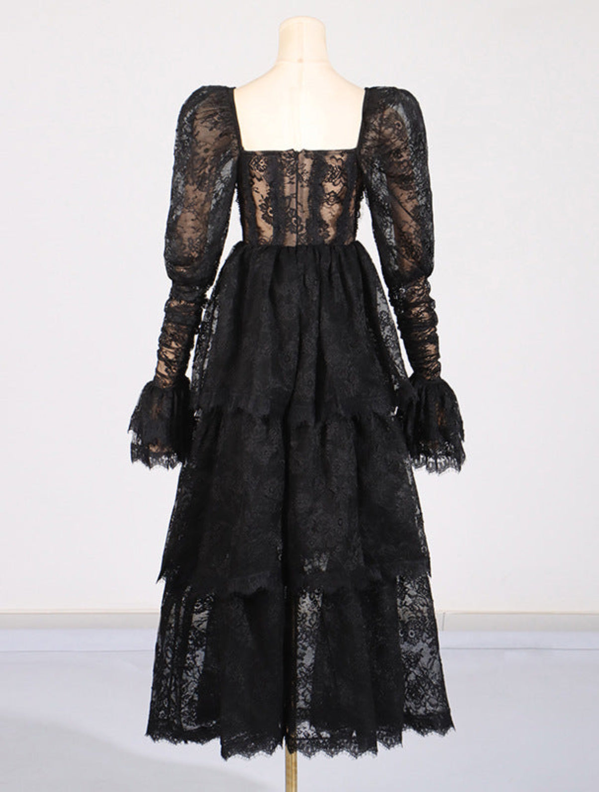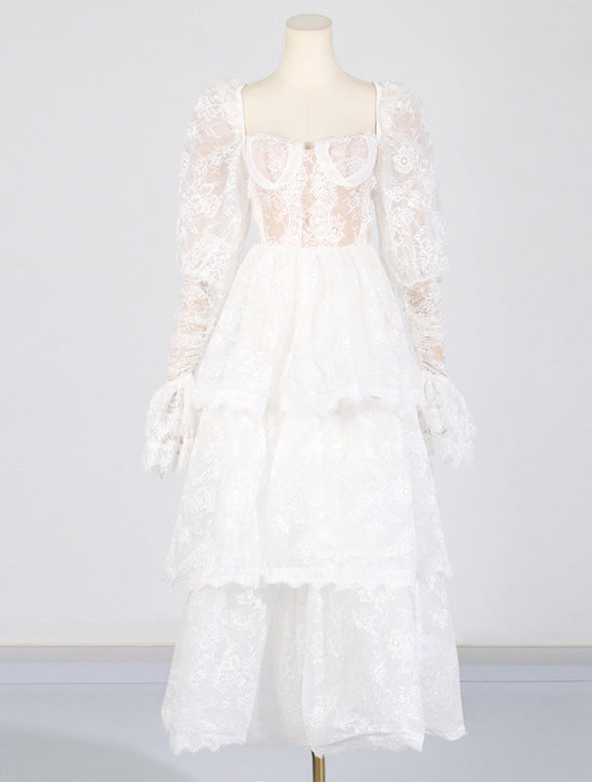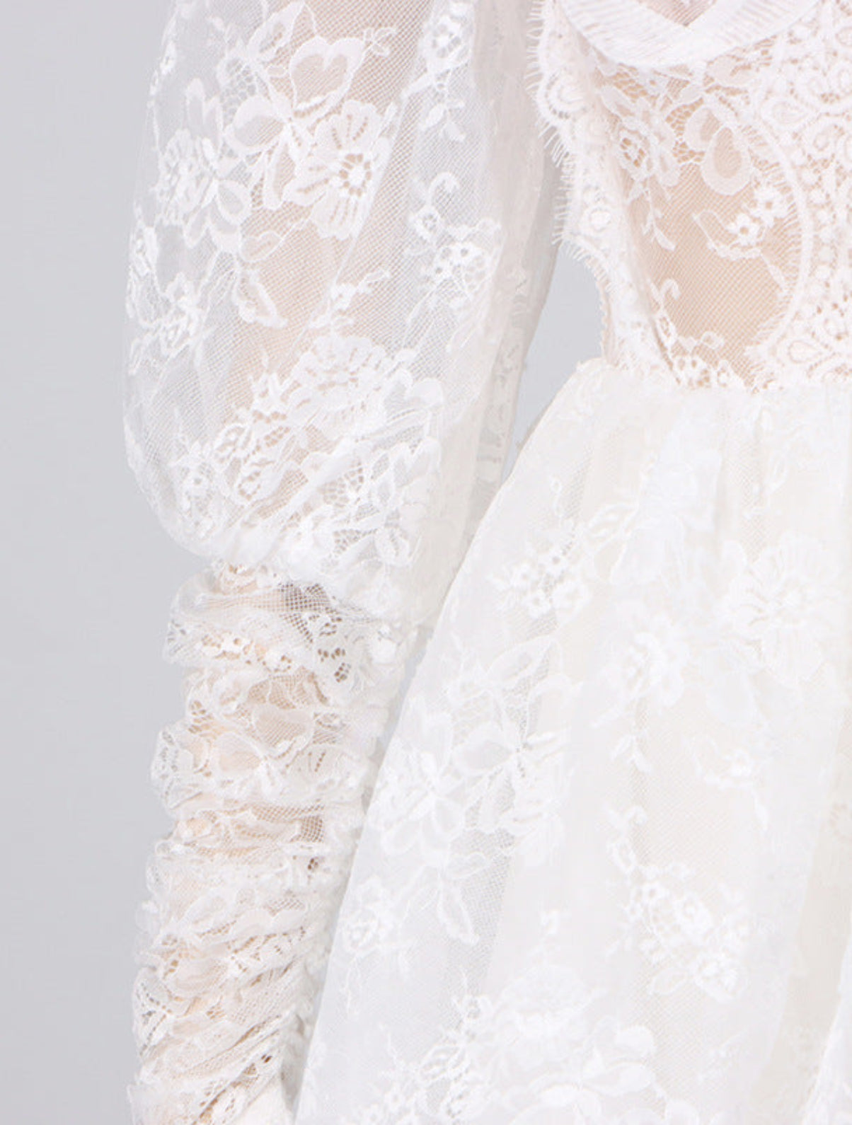 Elegant Bubble Sleeve Lace Mid-length Dress