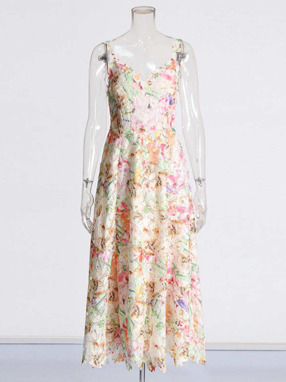 Elegant Ruffle Lace Solid Color Maxi Dress
