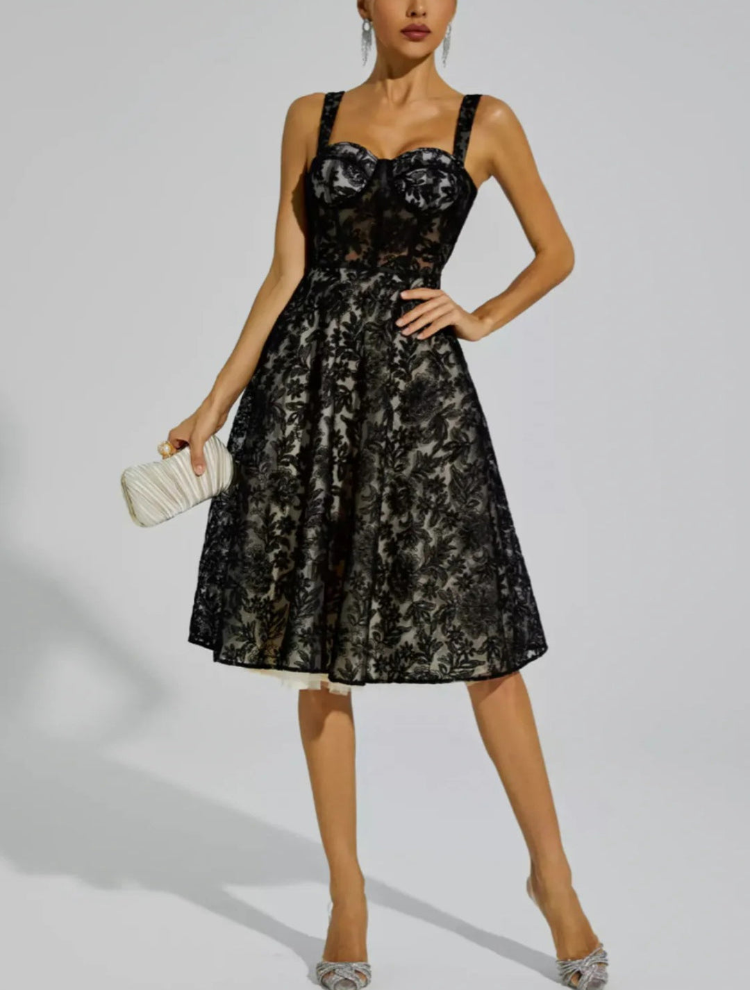 Elegant Bubble Sleeve Lace Mid-length Dress