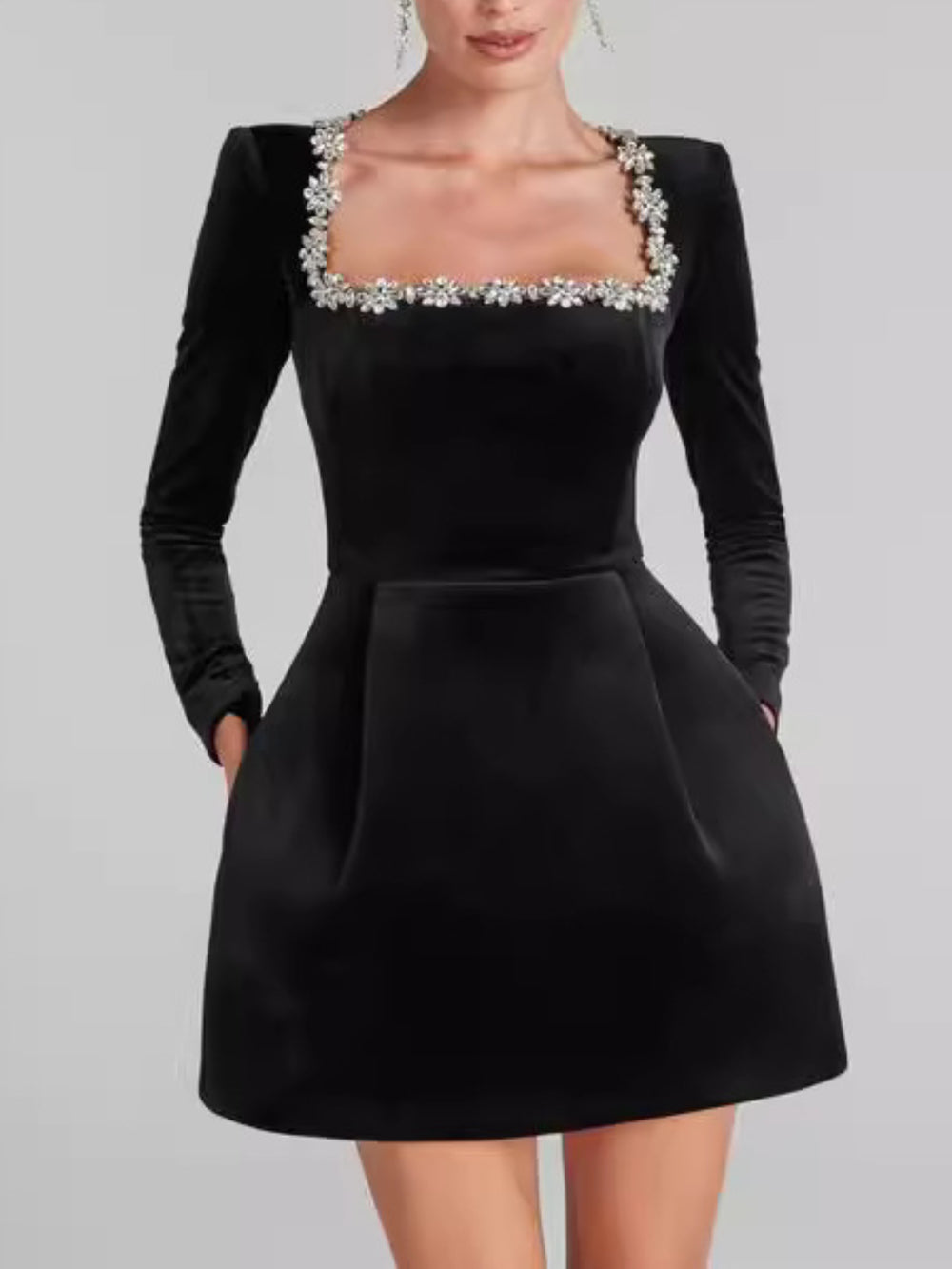 Fashion Order Diamond Long Sleeve Mini Dress