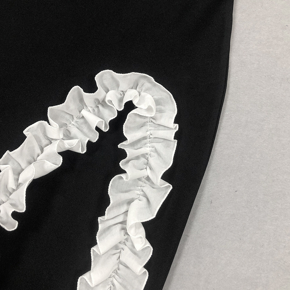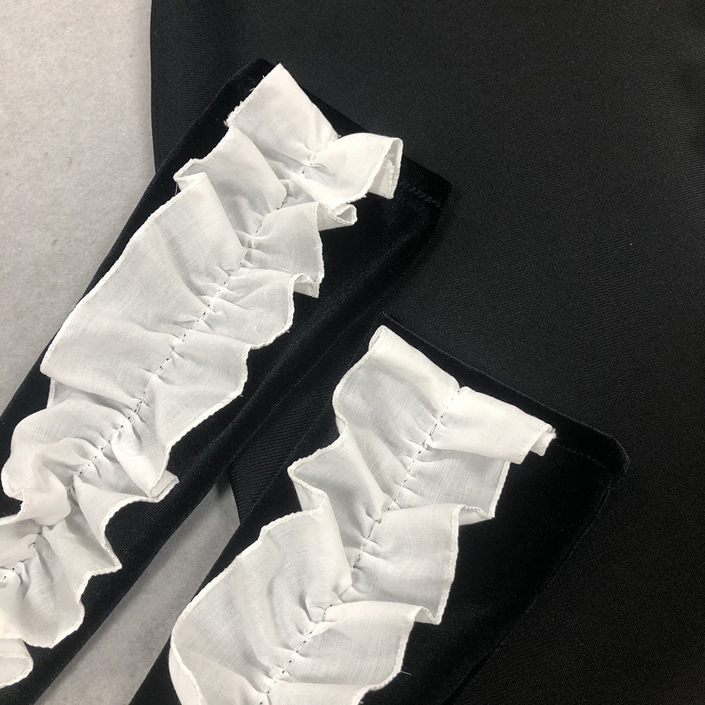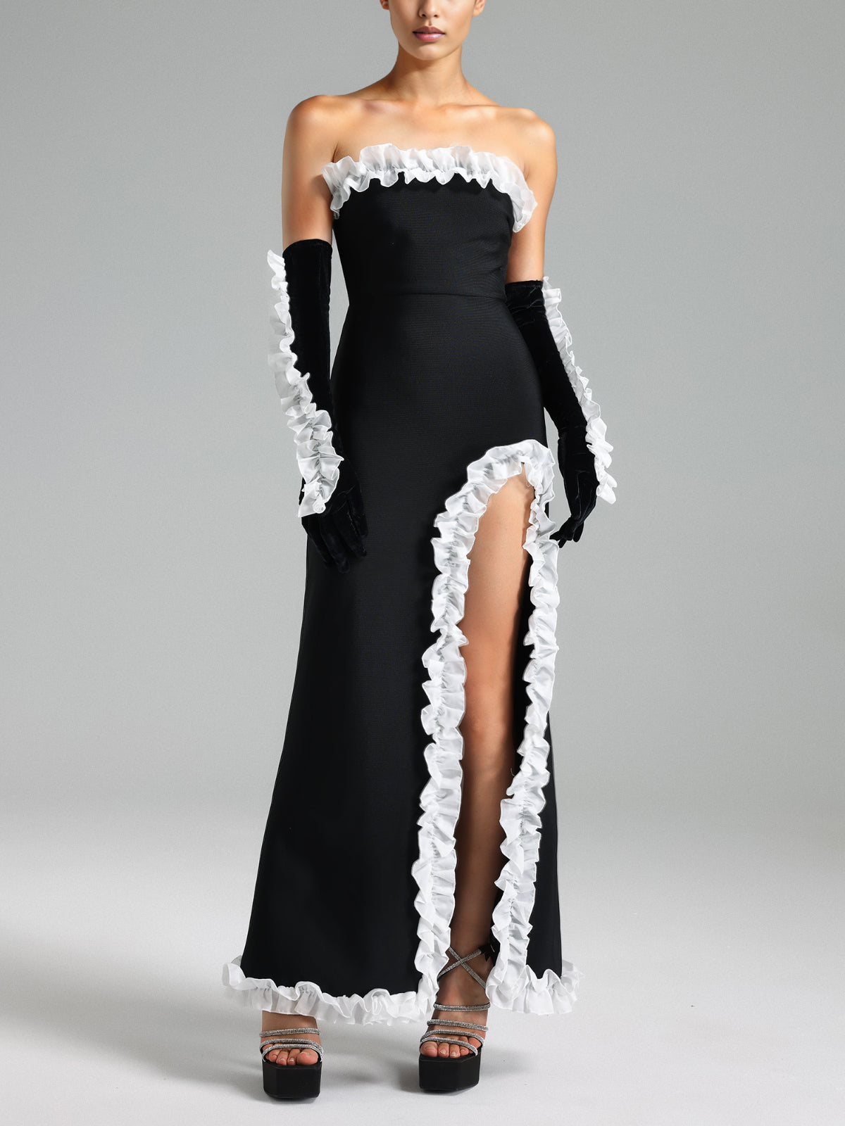 Ruffled Black Maxi Dress with Gloves