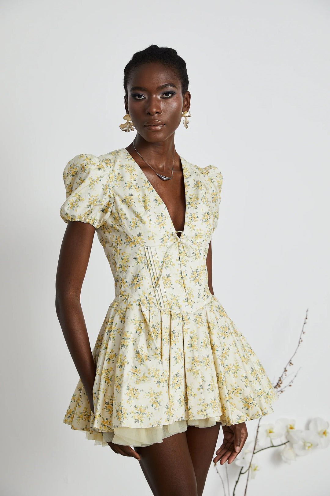 Floral Print Pleated Mini Dress