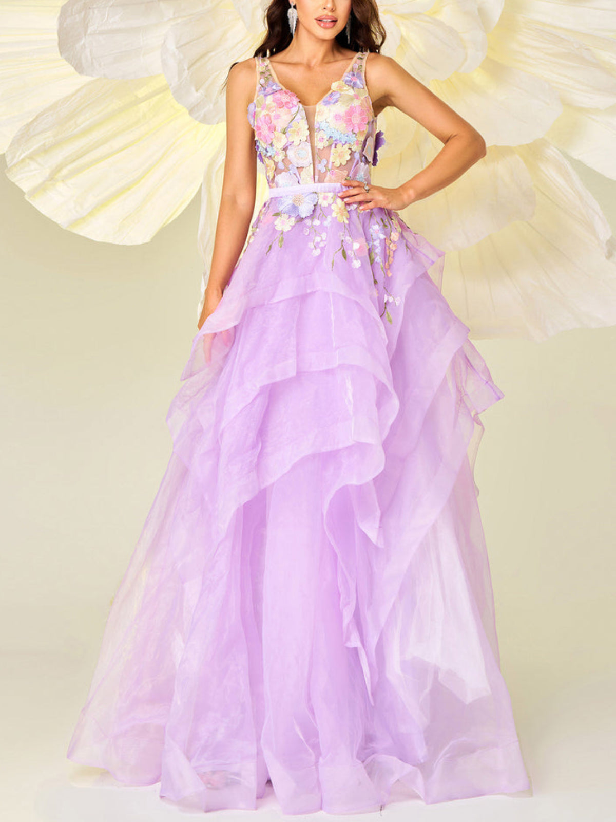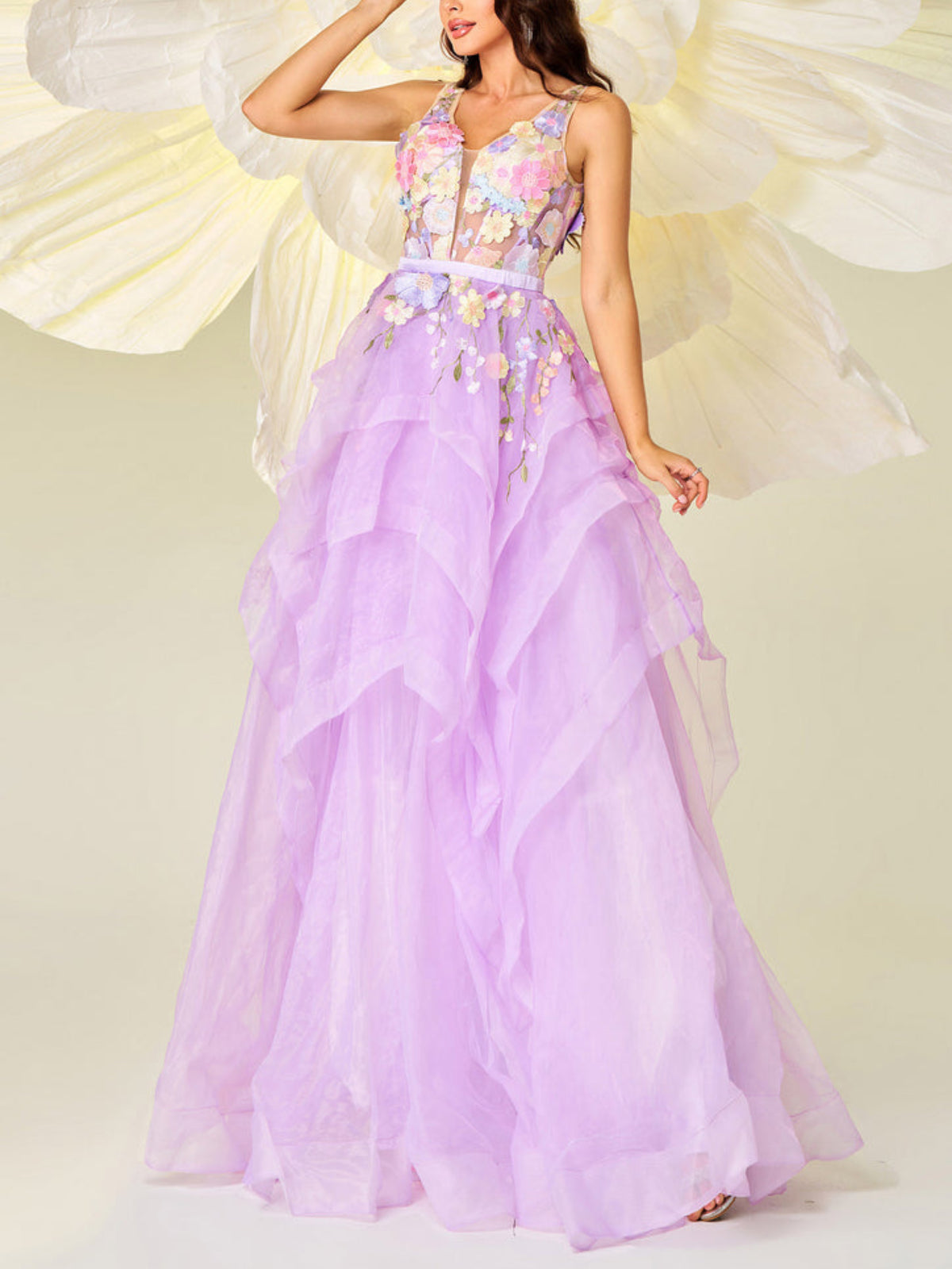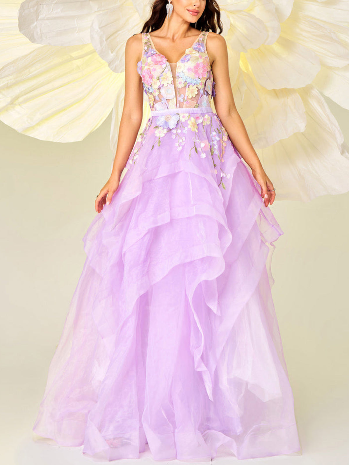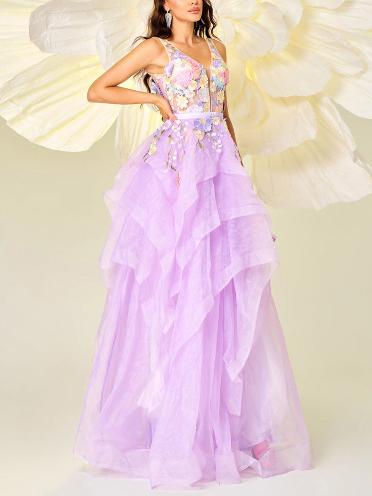 Elegant Sleeveless Flower Maxi Dress