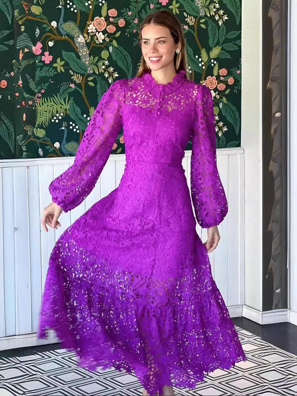 Monroe Purple Hollow Long Sleeve Maxi Dress