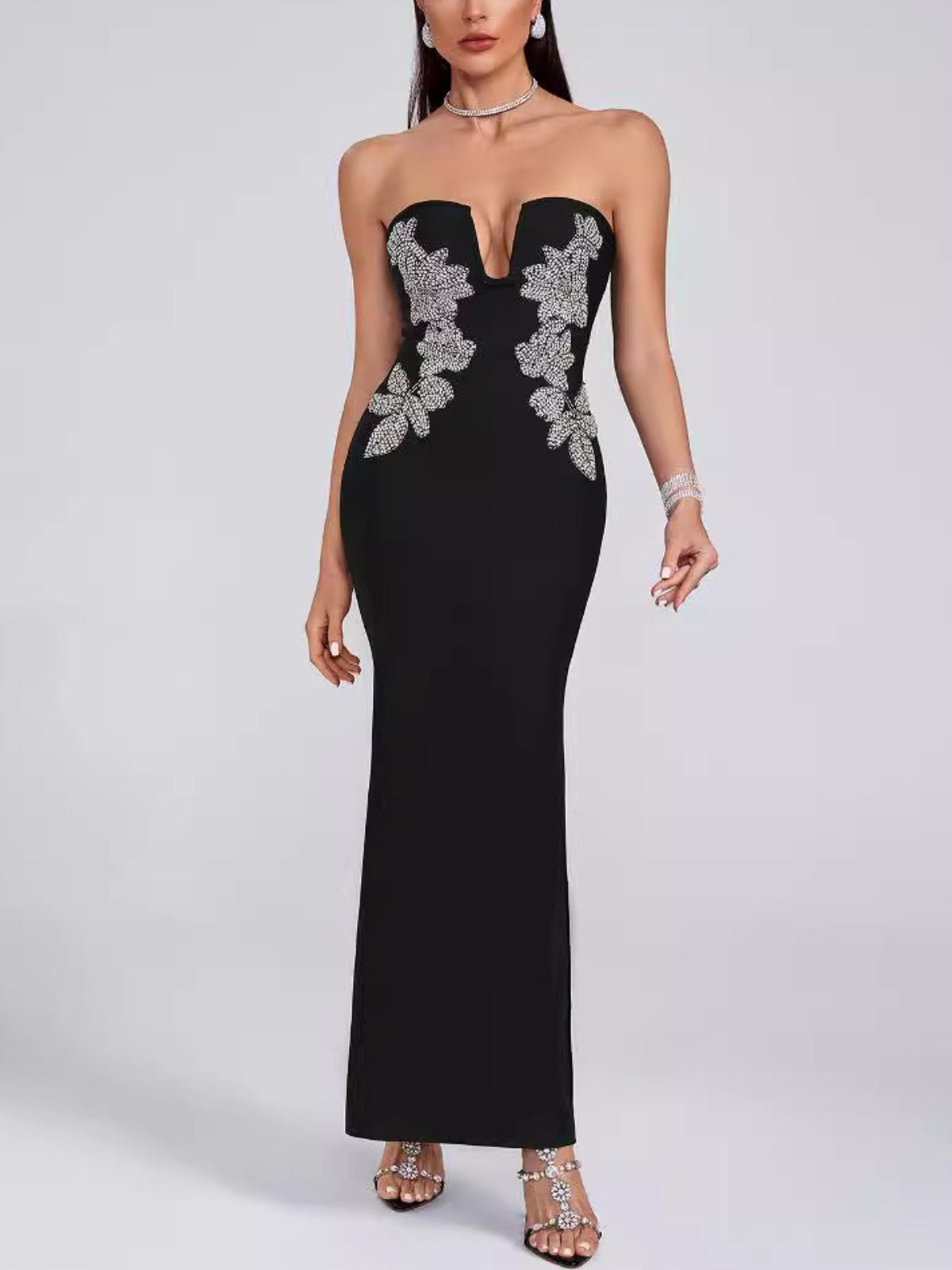 Elegant Tube Top Flower Diamond Dress