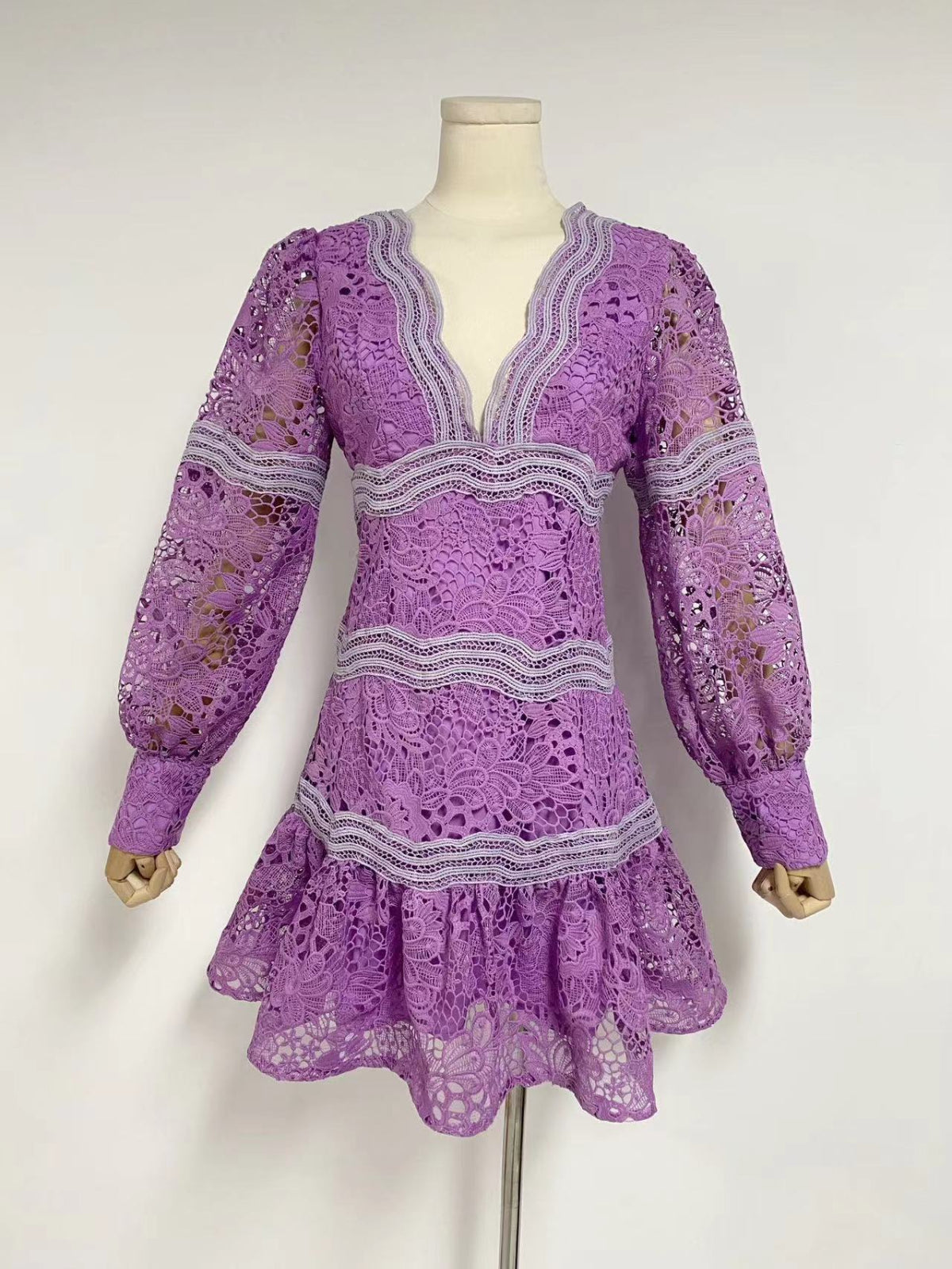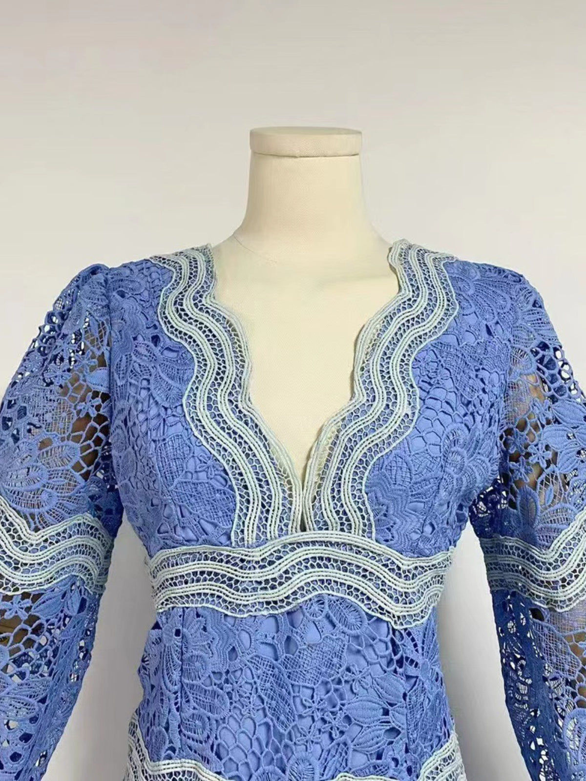 Aubrey Lantern Sleeve Patchwork Hollow Dress